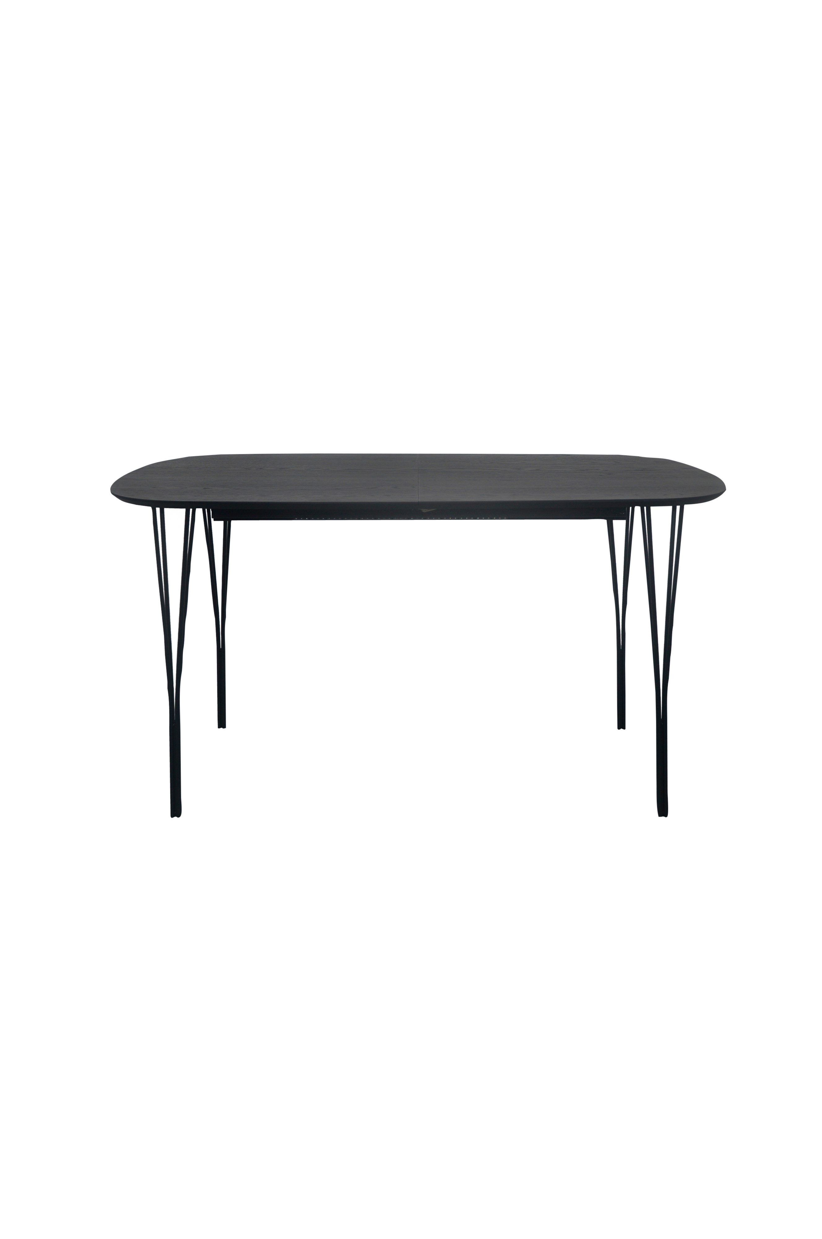 Förlängningsbart och praktiskt matbord i lackerad ek och stålben.