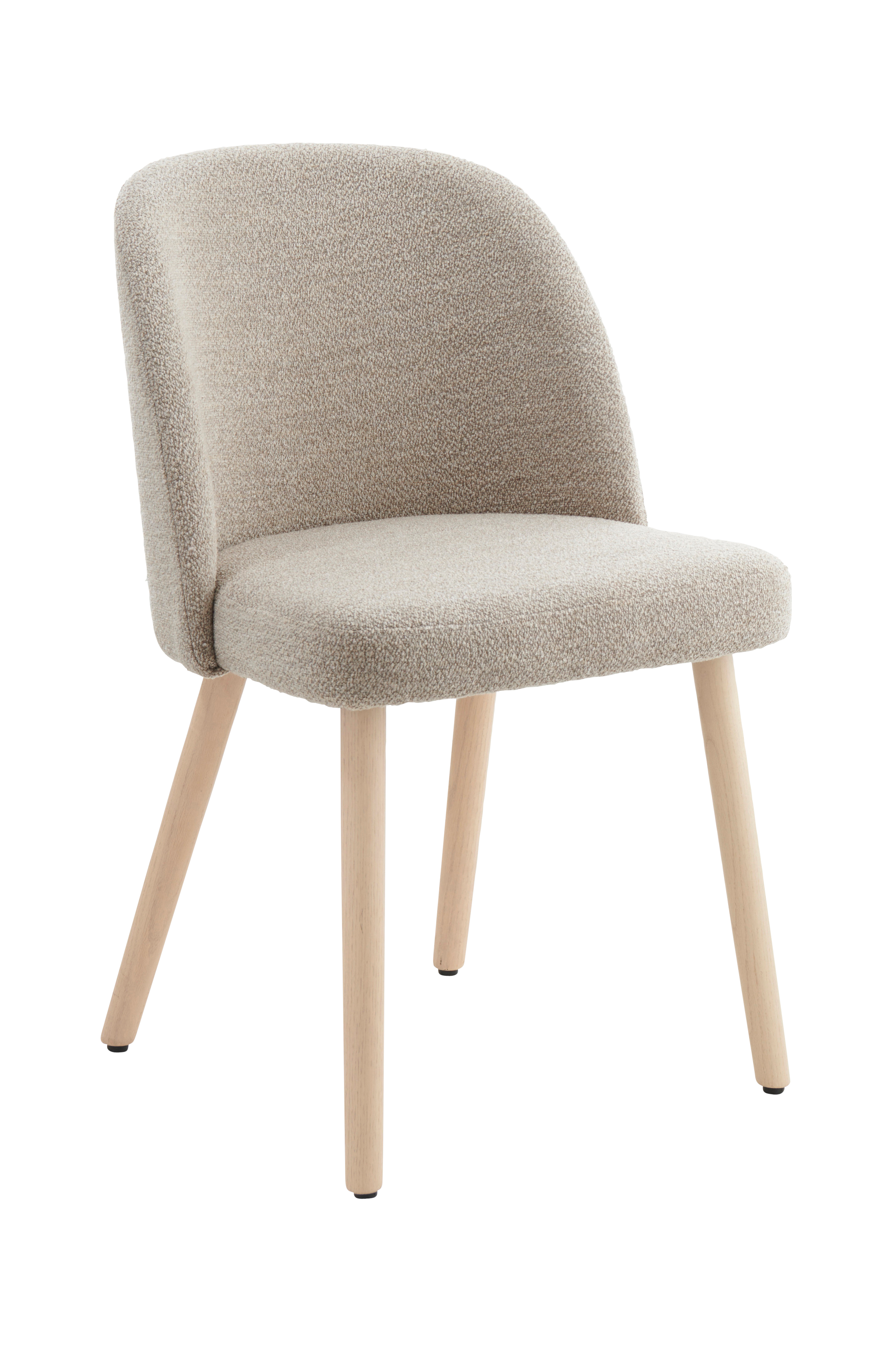 Matstol i boucle-tyg och ben i lackad ek.