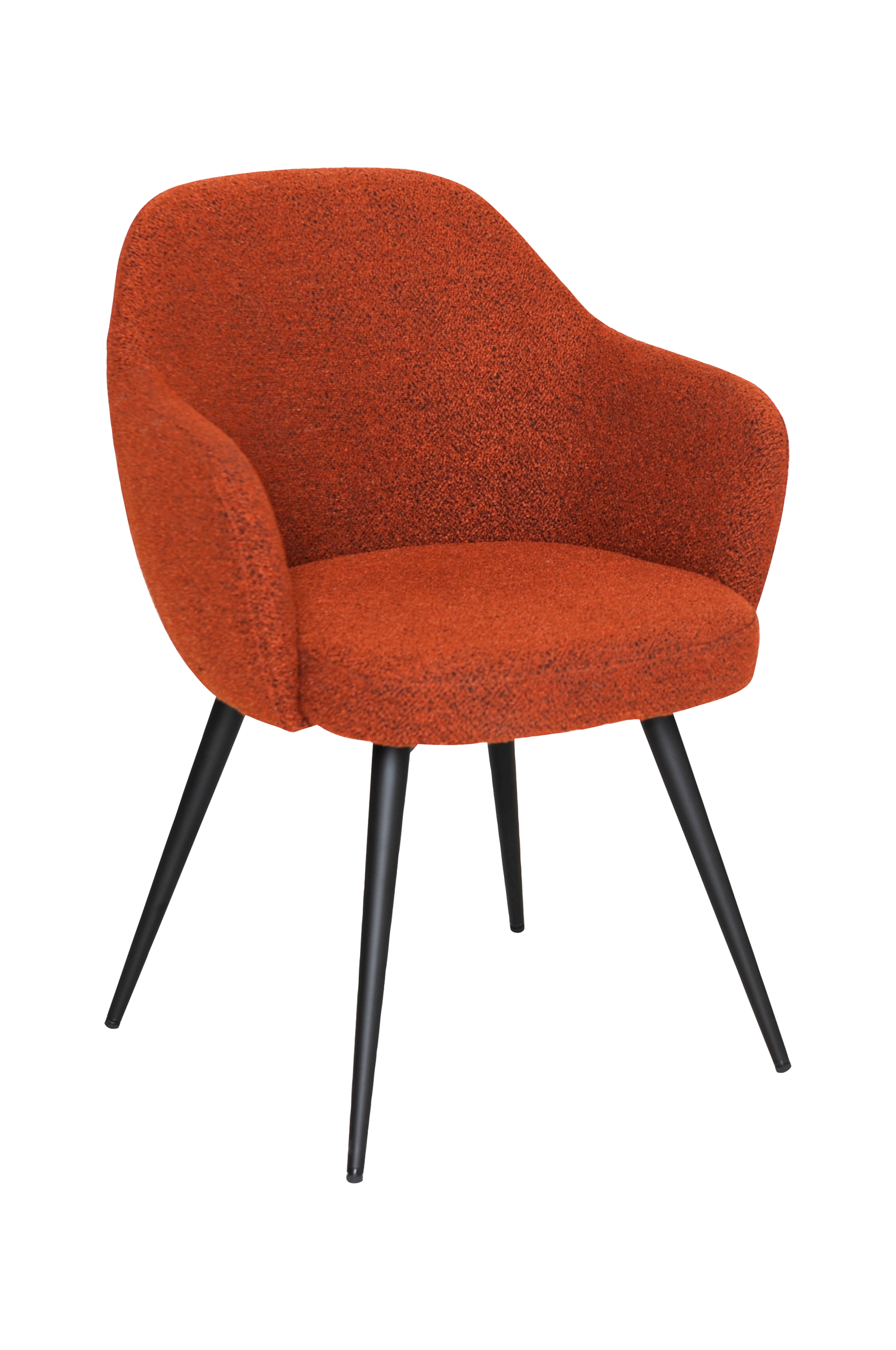 Sitsen är i mjukt tyg och benen består av lackerad metall.