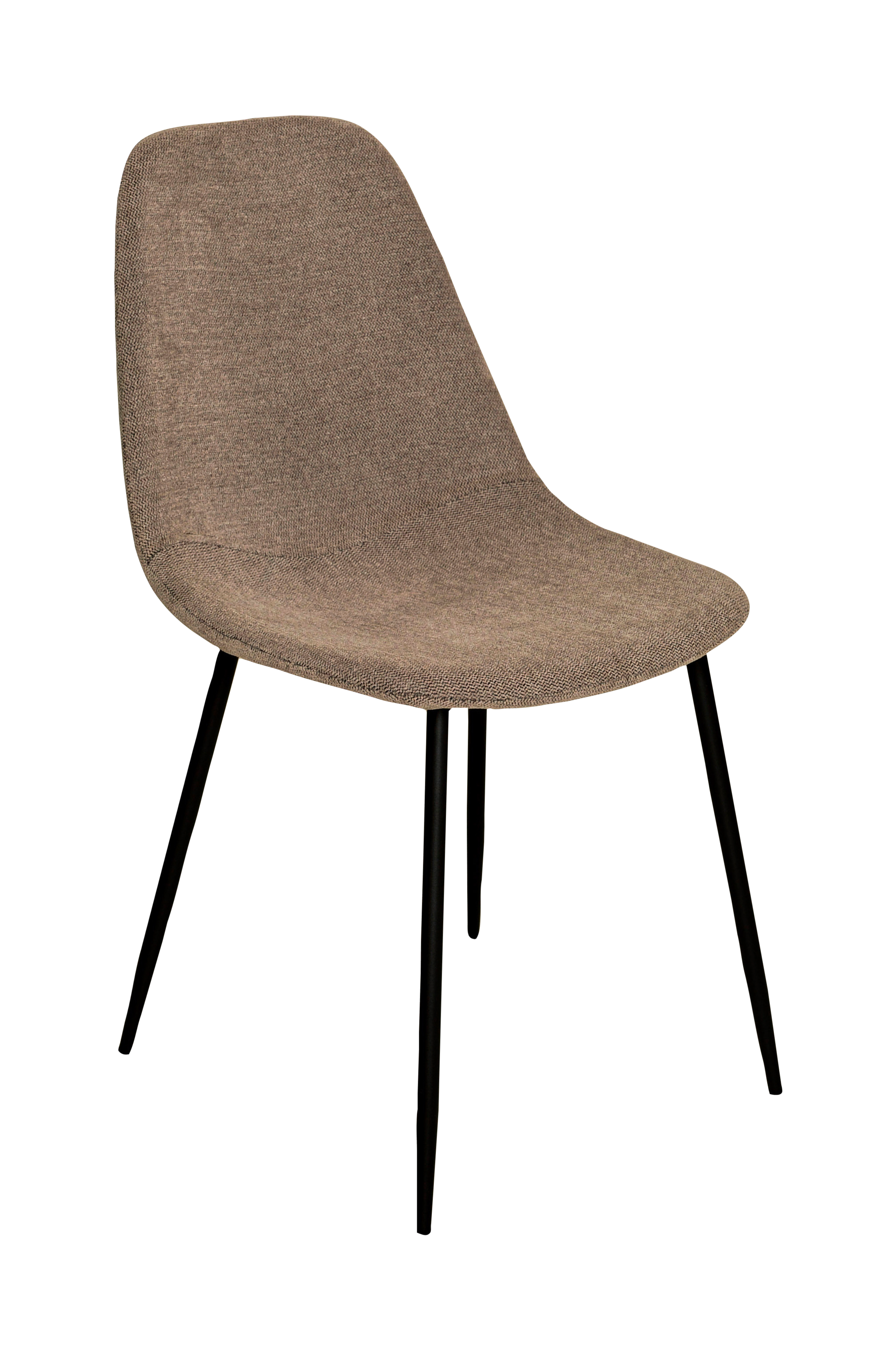 Nätt matstol i tyg med ben i lackad metall.