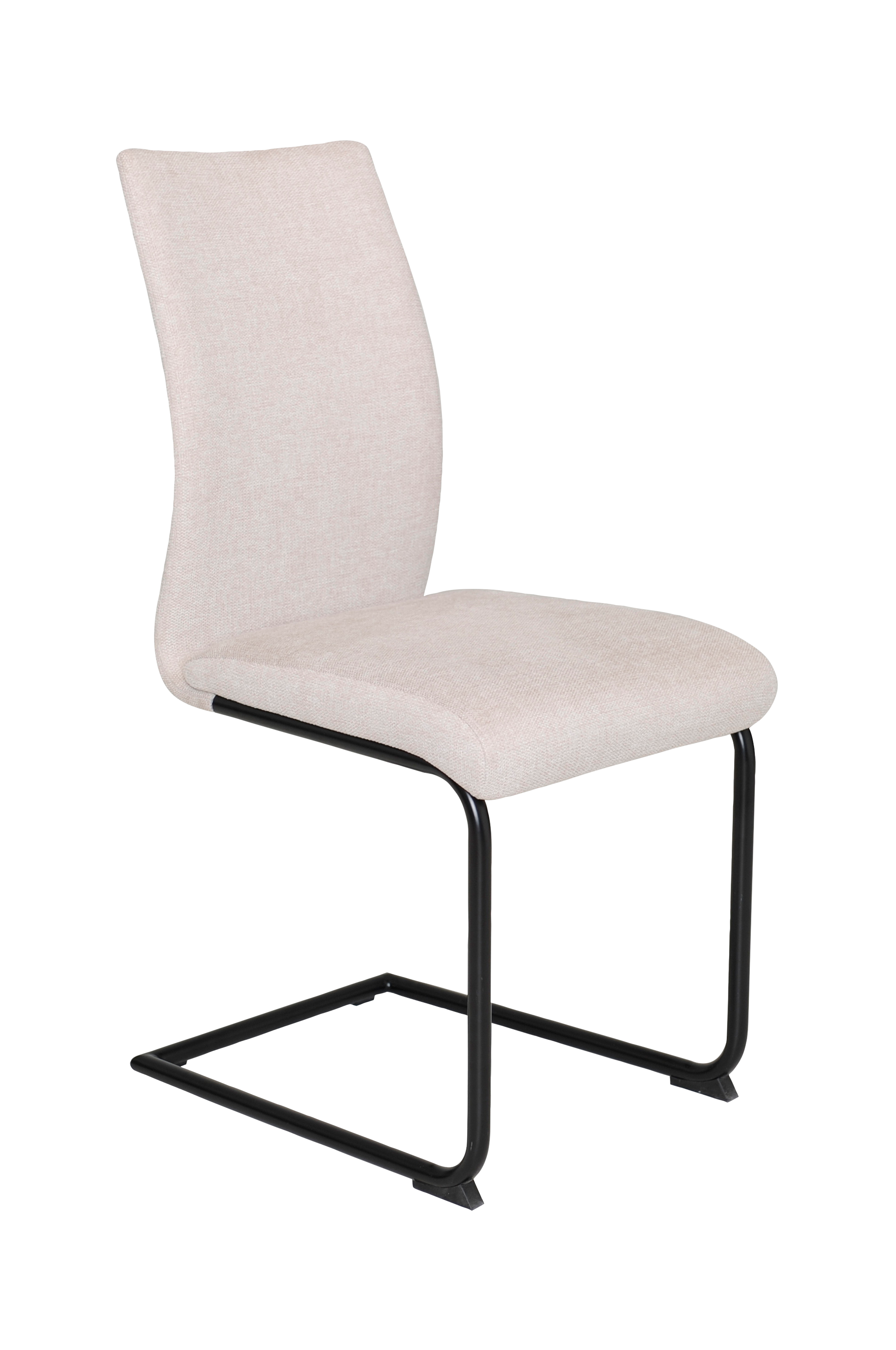 Modern matstol i slitstarkt tyg. Stolen har metallben med en design som ger en lätt svängning.