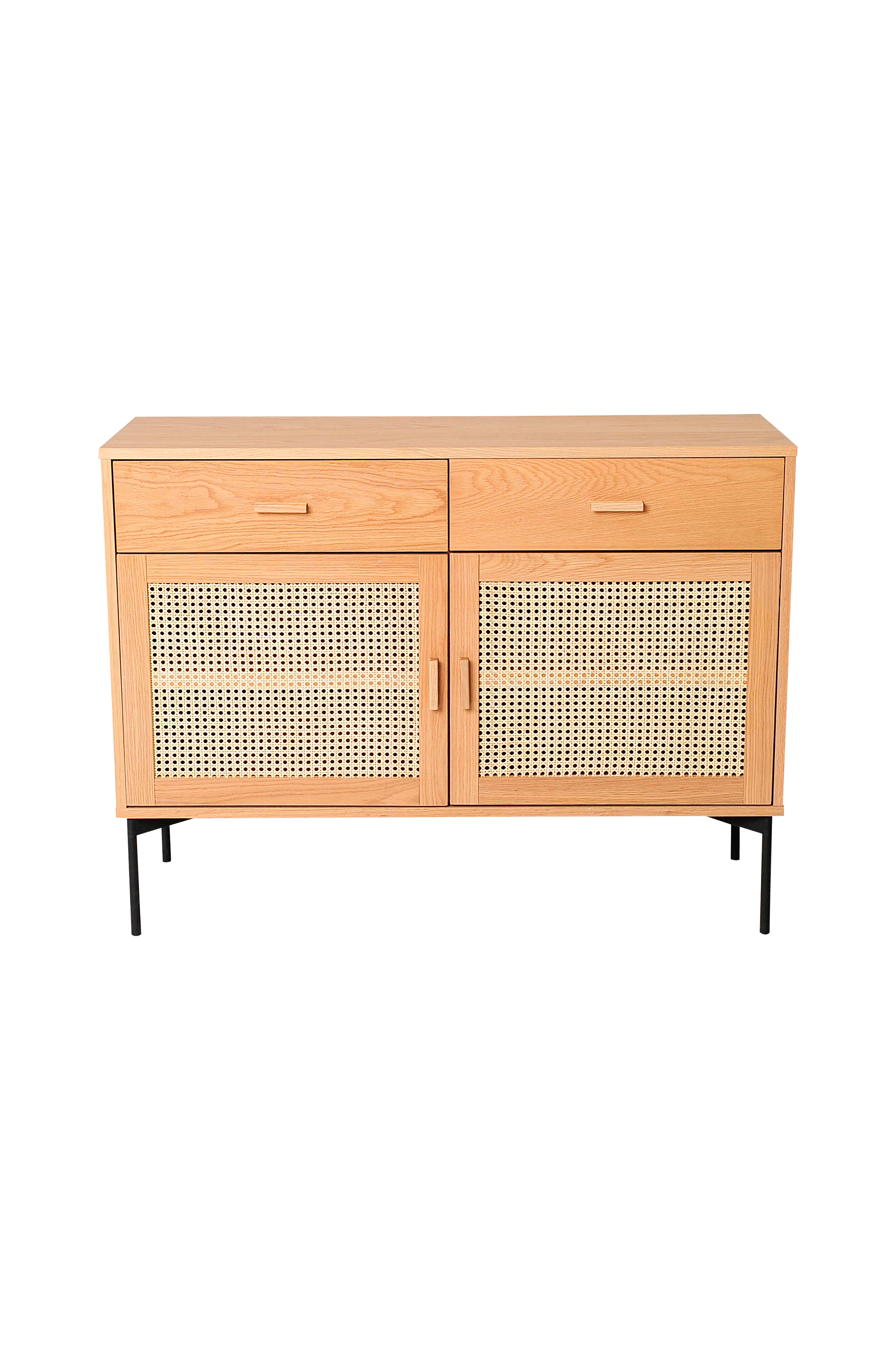 Sideboard i lackad ek, rotting och metall med 2 dörrar och 2 lådor.