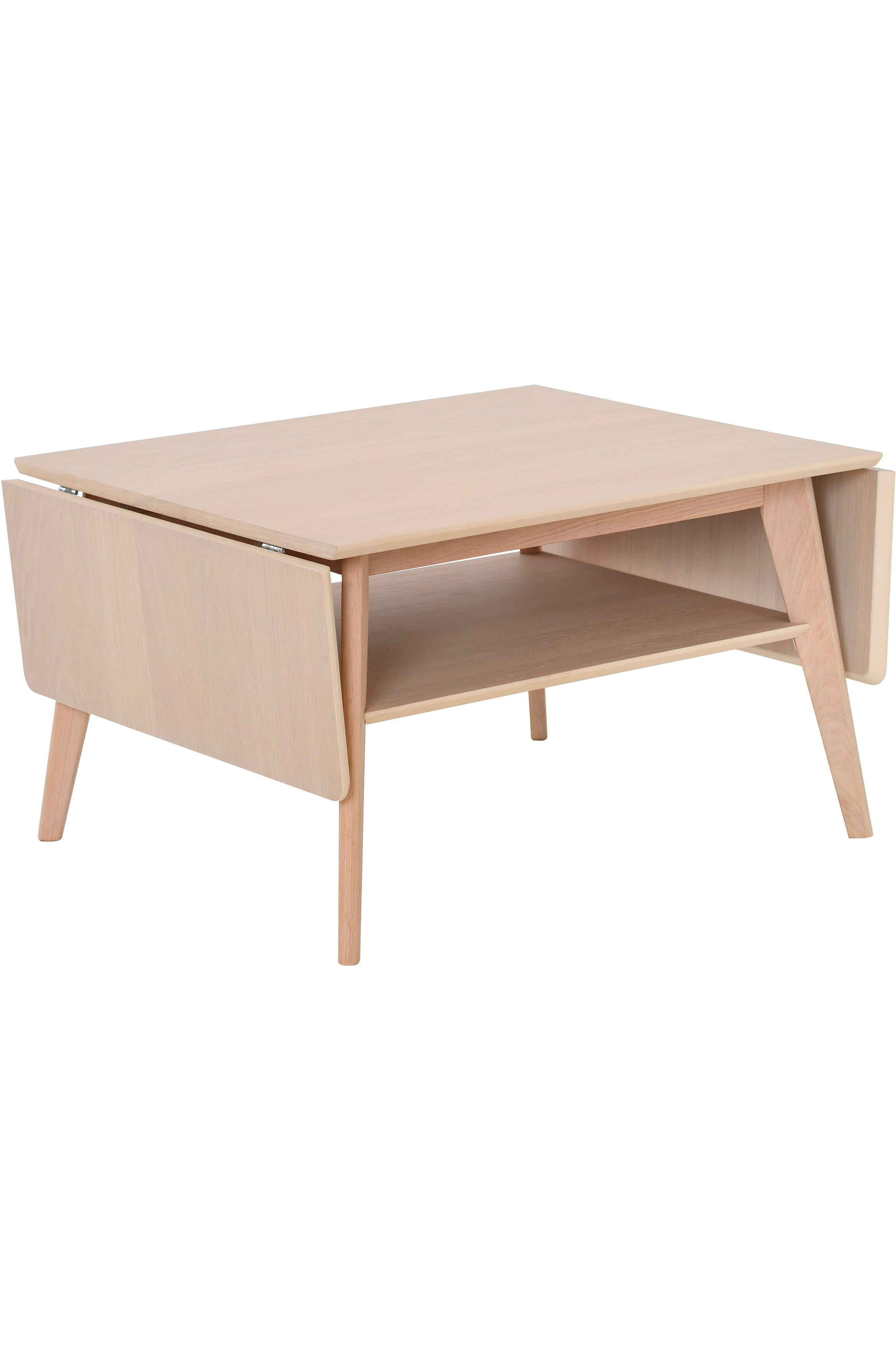 Ett rektangulärt soffbord med två utdragsskivor på sidorna, vilket gör att bordsskivan kan utökas vid behov.