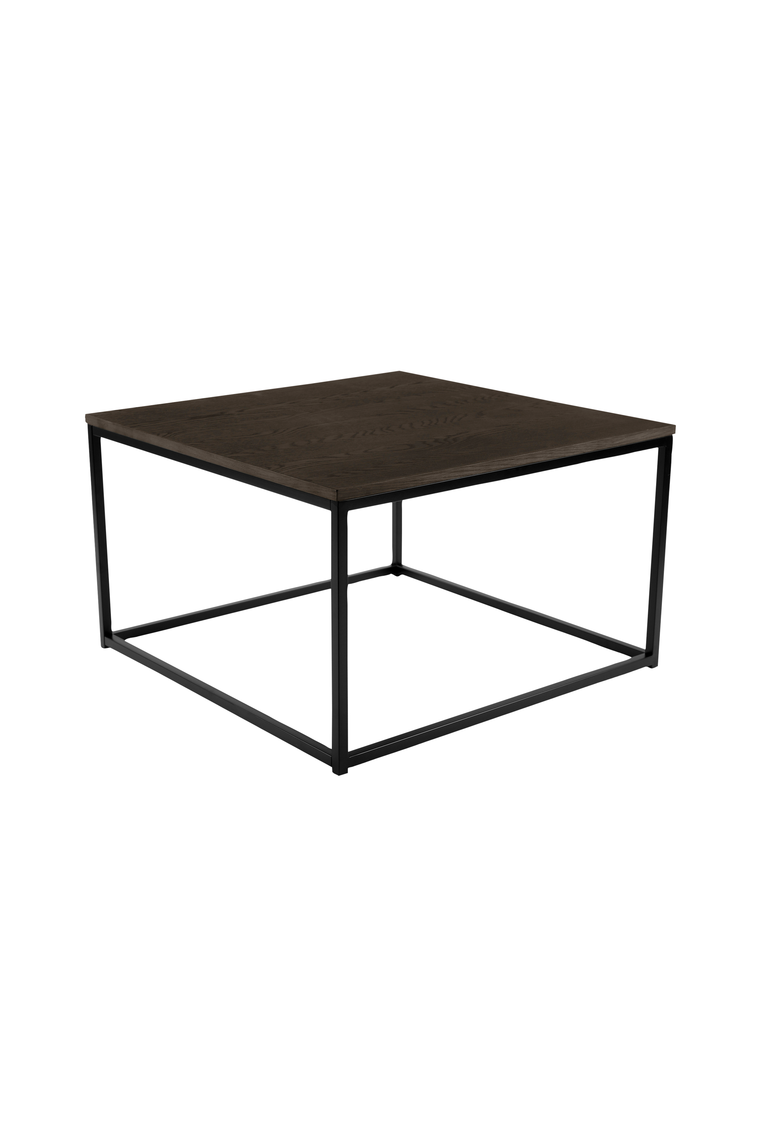 Soffbord i lackerad ekfaner och metall. Omonterad.