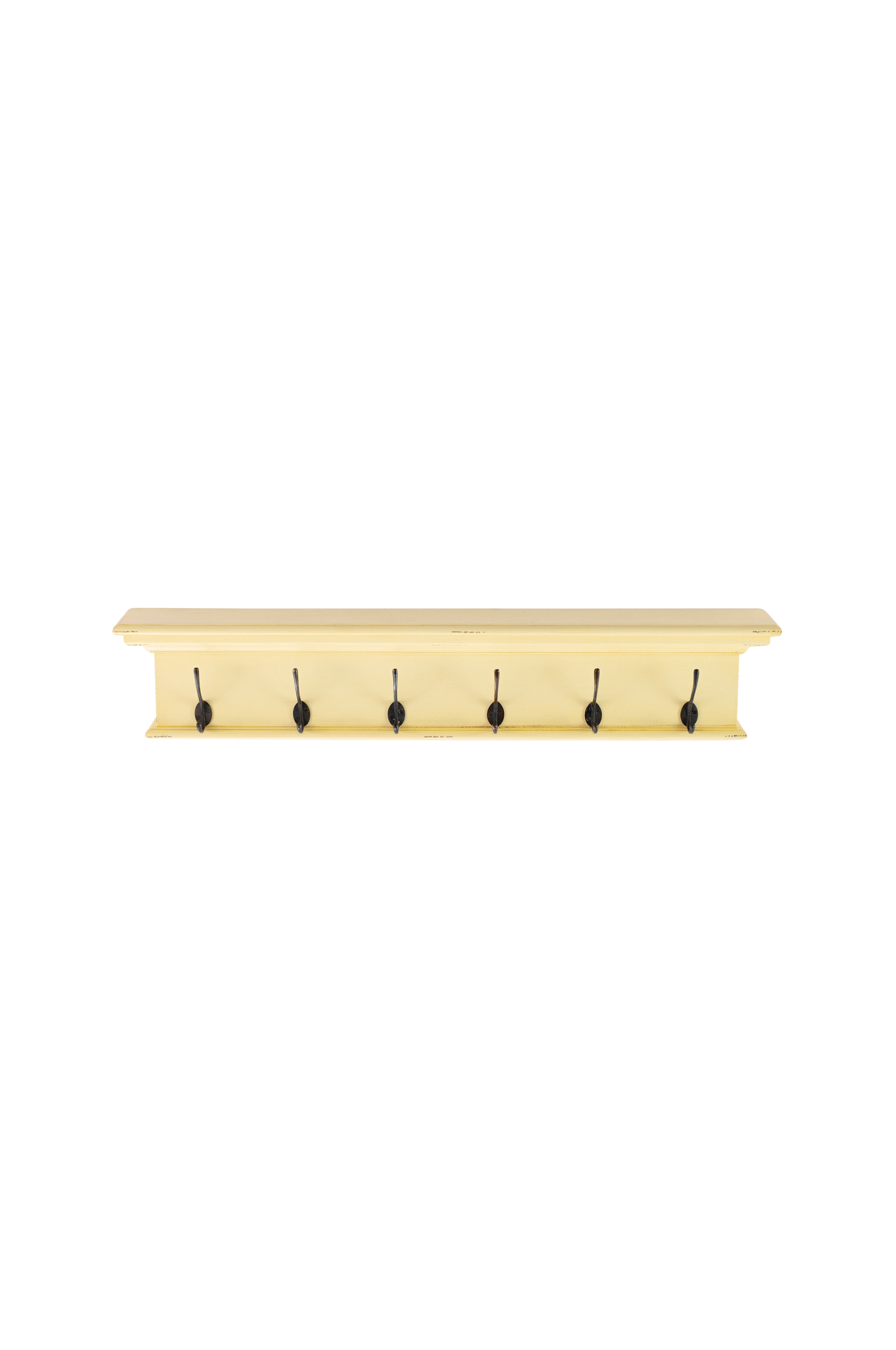Lägg till lite känsla med denna smart designade klädhängare. En liten hylla har integrerats i kronlisten, som en plats att visa upp dina dekorativa föremål. Stora klädkrokar med antik mässingsfinish ger plats för jackor, nycklar eller handväskor. Välj mellan 4, 6 eller 8 krokar.