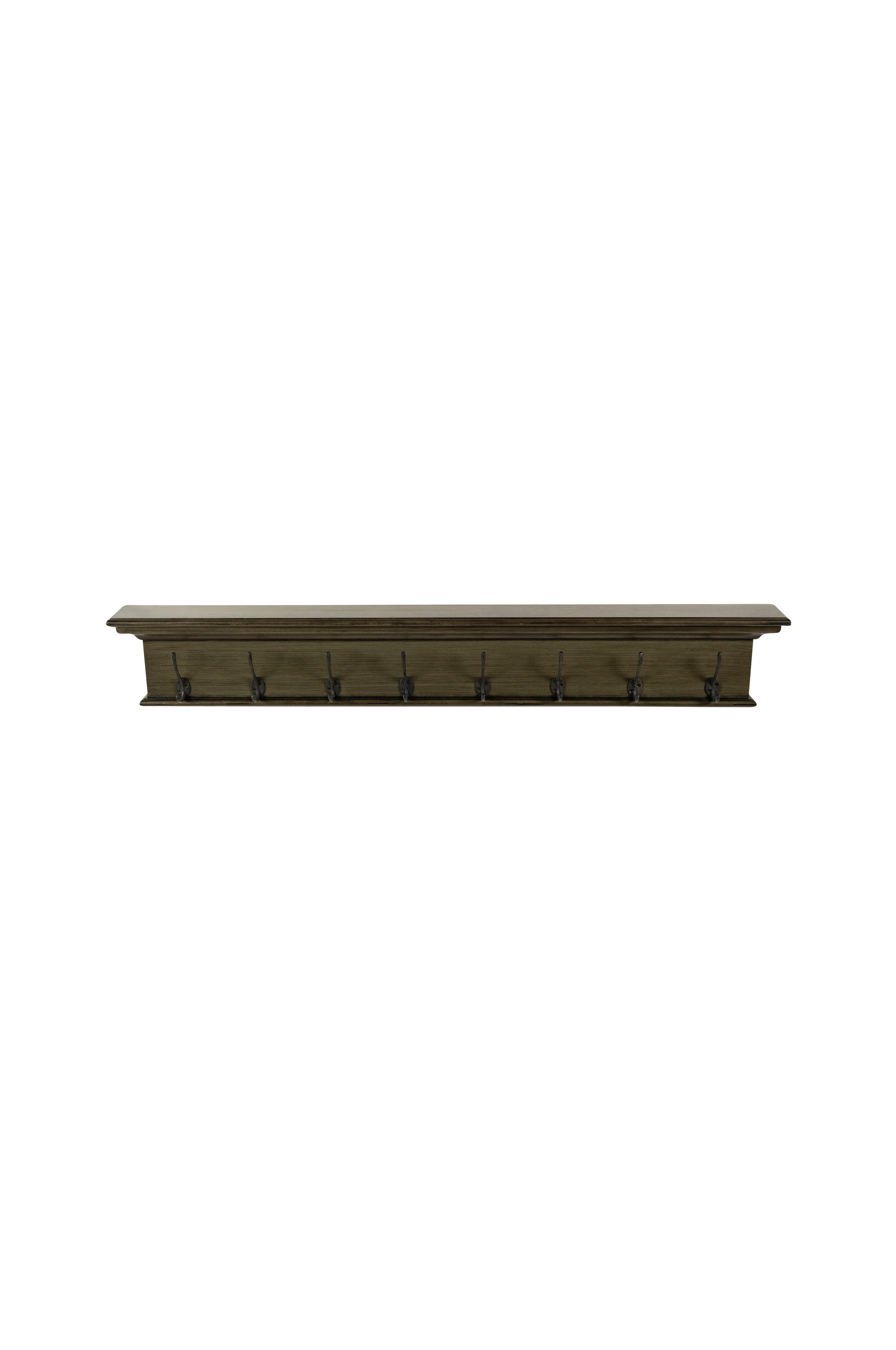 Lägg till lite känsla med denna smart designade klädhängare. En liten hylla har integrerats i kronlisten, som en plats att visa upp dina dekorativa föremål. Stora klädkrokar med antik mässingsfinish ger plats för jackor, nycklar eller handväskor. Välj mellan 4, 6 eller 8 krokar.