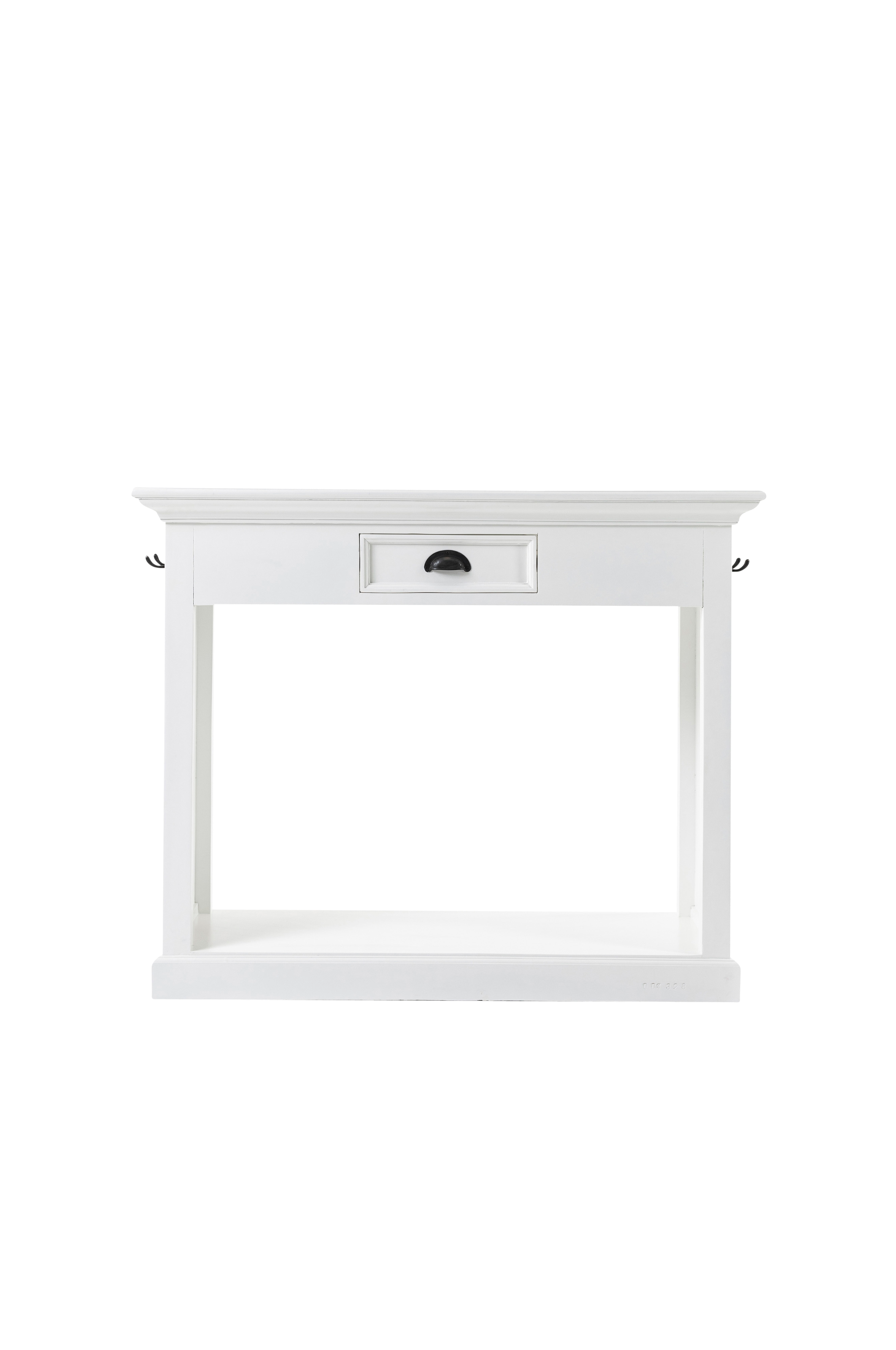Funktionalitet för små kök när den är som bäst. Denna smarta och kompakta matgrupp levereras i ett charmigt och effektivt paket. Inkluderar en låda, 2 krokar och förvaringsutrymme undertill. De två tillhörande pallarna har dynor tillverkade i kraftig naturfärgad bomull med fiskbensmönstrad väv. Kuddfodralen är avtagbara för enkel rengöring. Den halvblanka målade ytan och beslag i antik mässing fulländar looken.