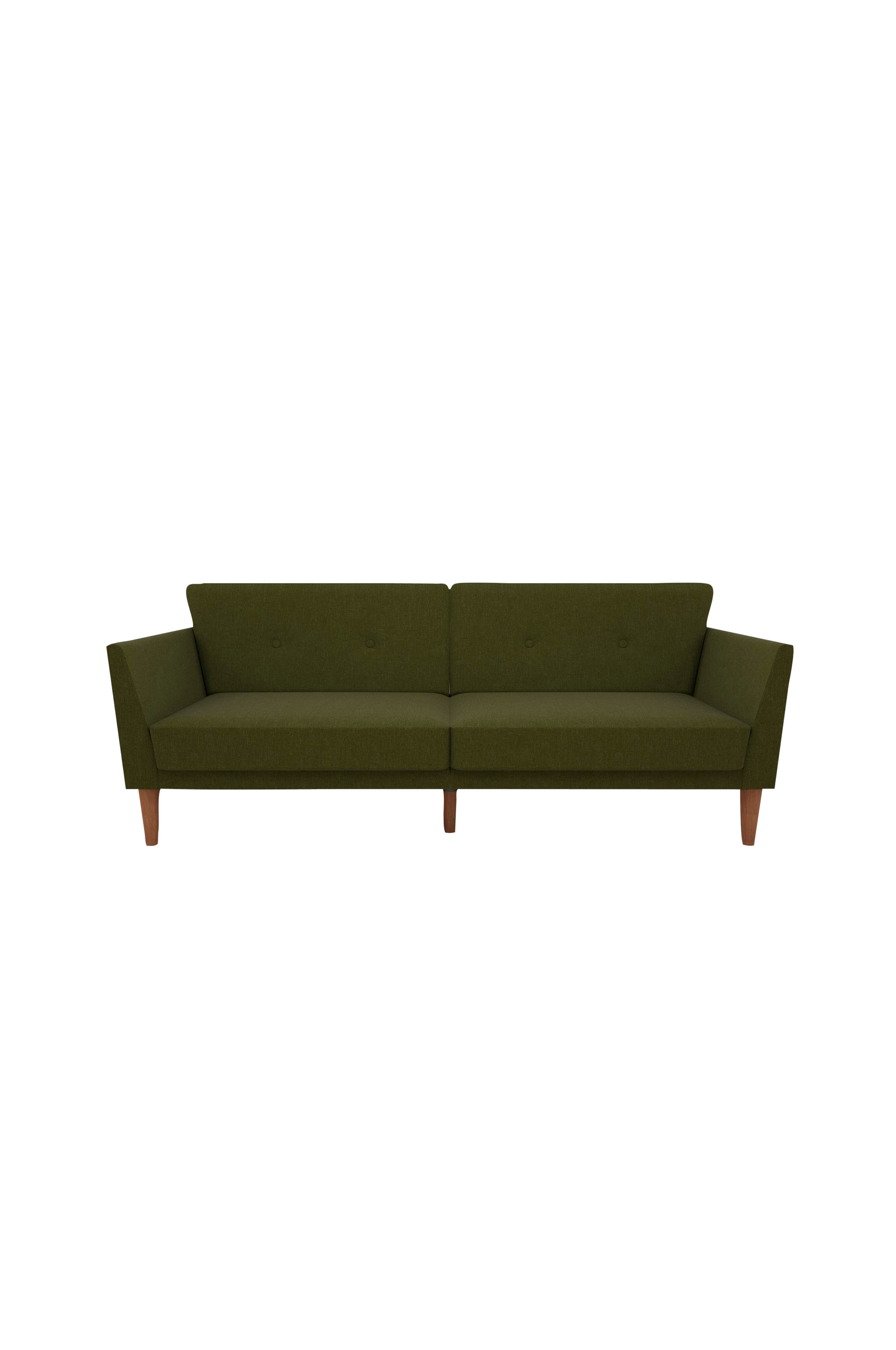 1950-talet är tillbaka med besked och vardagsrum över hela landet får moderna, 1950-talsinspirerade inslag med de så populära raka linjerna och låga profilerna. Regal bäddsoffa från Novogratz fångar allt det och mer, med en snygg klädsel, ett tuftat ryggstöd, breda armstöd och en elegant stil. Dessutom är den konstruerad med en stomme av trä som ger det långvariga stöd du behöver i många år framöver. Benen av trä kompletterar stilen, med ett ben i mitten som ger extra stabilitet. Du kan också justera komfortnivån tack vare det delade ryggstödet som gör att du och en gäst samtidigt kan sitta upp eller luta er tillbaka. Har du gäster som vill övernatta? Enkelt, gör bara om Regal bäddsoffa till en säng med en enkel tryck- och dragrörelse. Vi har även lagt vaddering under benen för att skydda dina golv!