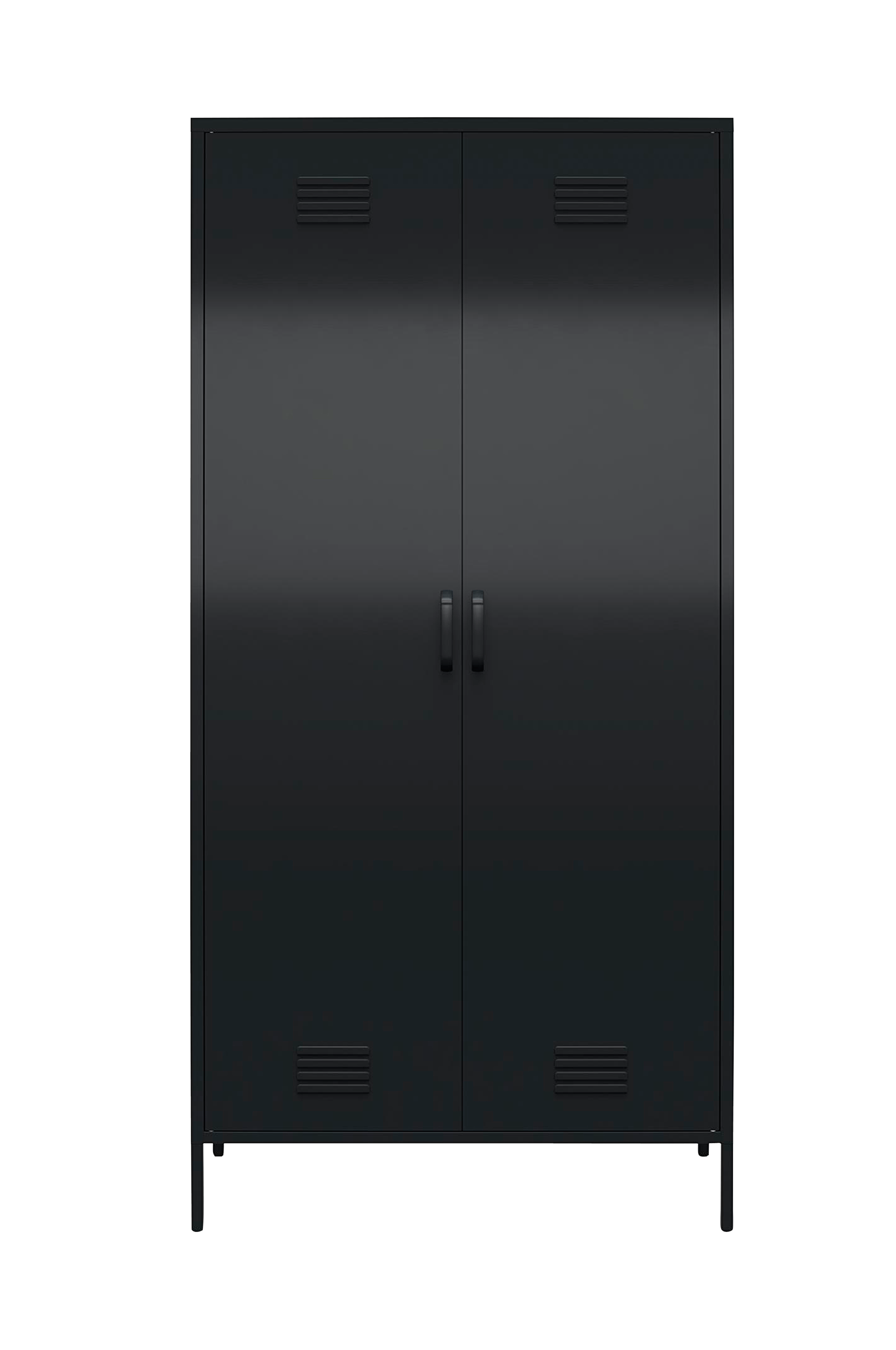 Skåpet Mission District Tall 2 Door Metal Locker Cabinet från Novogratz erbjuder extra förvaringsutrymme och blir en färgklick i hemmet. Skåpet är tillverkat av pulverlackerad metall och finns i flera roliga färger. De åtta hyllplanen är rymliga och rymmer allt från städprodukter till extrafiltar och skafferivaror, och du rengör enkelt metallen med en fuktig trasa. Hyllplanen är justerbara så att du kan anpassa dem efter dina behov. Ett kit för att fästa möbeln säkert i väggen medföljer. Skåpet levereras i ett platt paket och kräver montering. Vi rekommenderar att två vuxna monterar produkten. Monterat mäter skåpet H185 x B90 x D40 cm.