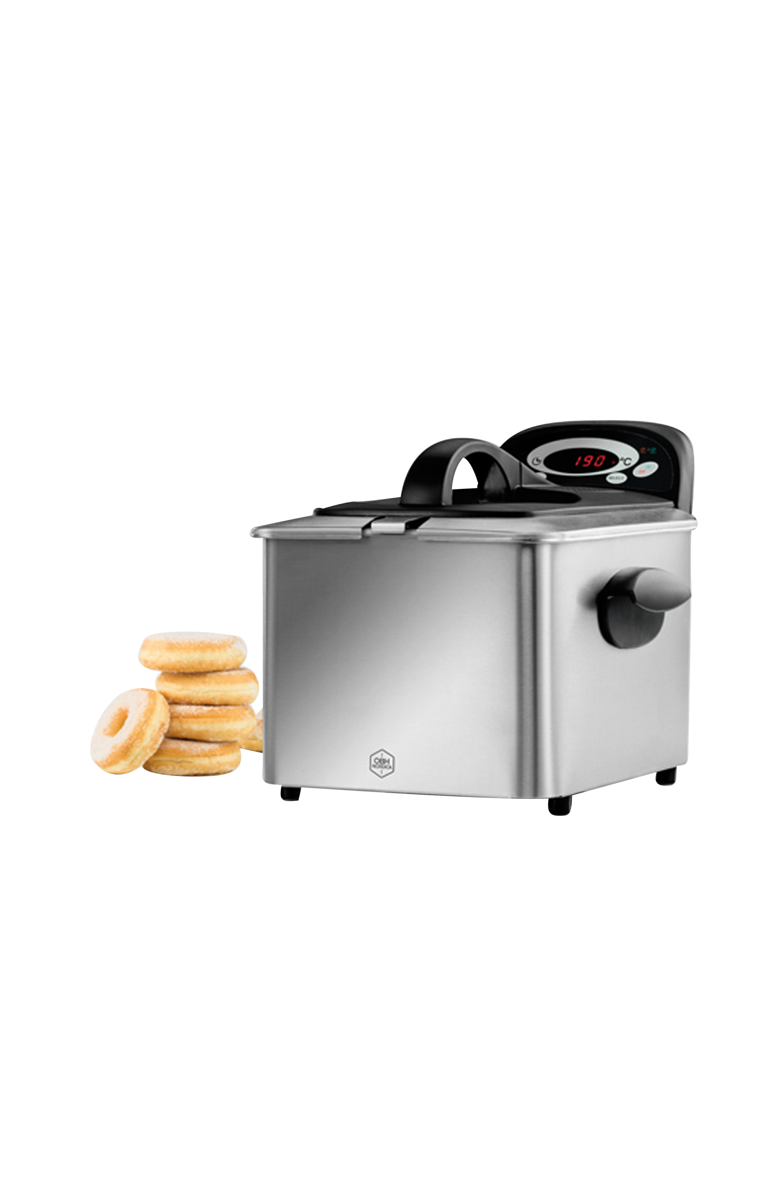 Fritös i borstat stål som har alla funktioner för att du ska lyckas med din fritering. Oljan värms snabbt upp och håller konstant temperatur. Cool zone förlänger oljans livslängd och förhindrar att smulor och annat bränns vid. Digital display som visar tid/temperatur och signallampa visar inkopplad/ klar att använda. Löstagbar behållare med non-stick beläggning.