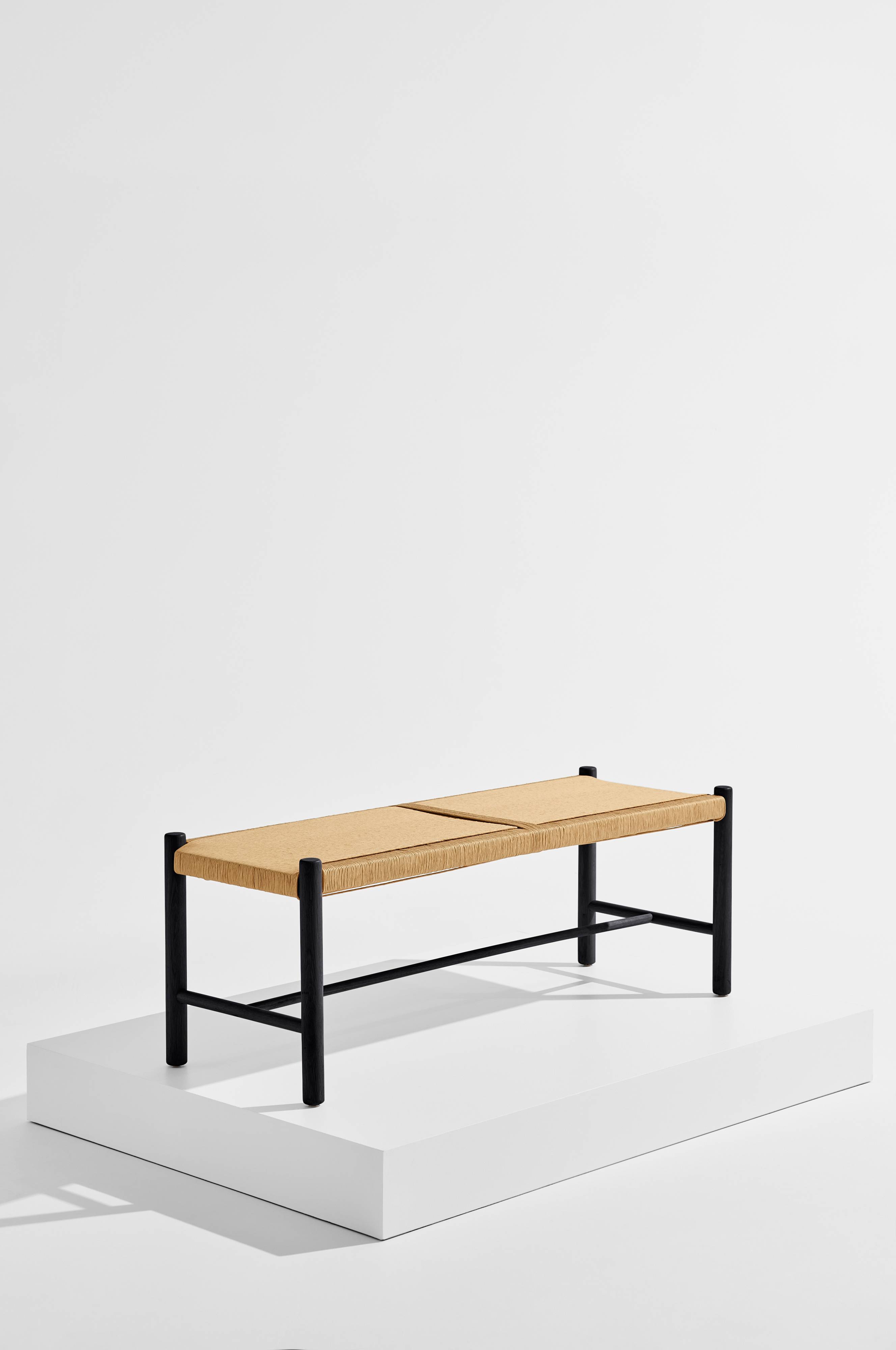 Klassiskt uttryck, stilren design och hållbara material gör Ines till en vinnare. Bänken är tillverkad av massiv, FSC-certifierad ek med en sits av tvinnad papperssladd. Den träfärgade bänken är behandlad med en vattenbaserad silkesmatt lack. Den svarta har en lack med pigment i, vilket gör att ådringen framträder på ett diskret sätt. Sitsen har lindats på ett enkelt och tilltalande sätt. Ines är en möbel som kan förändra känslan i ett helt rum.