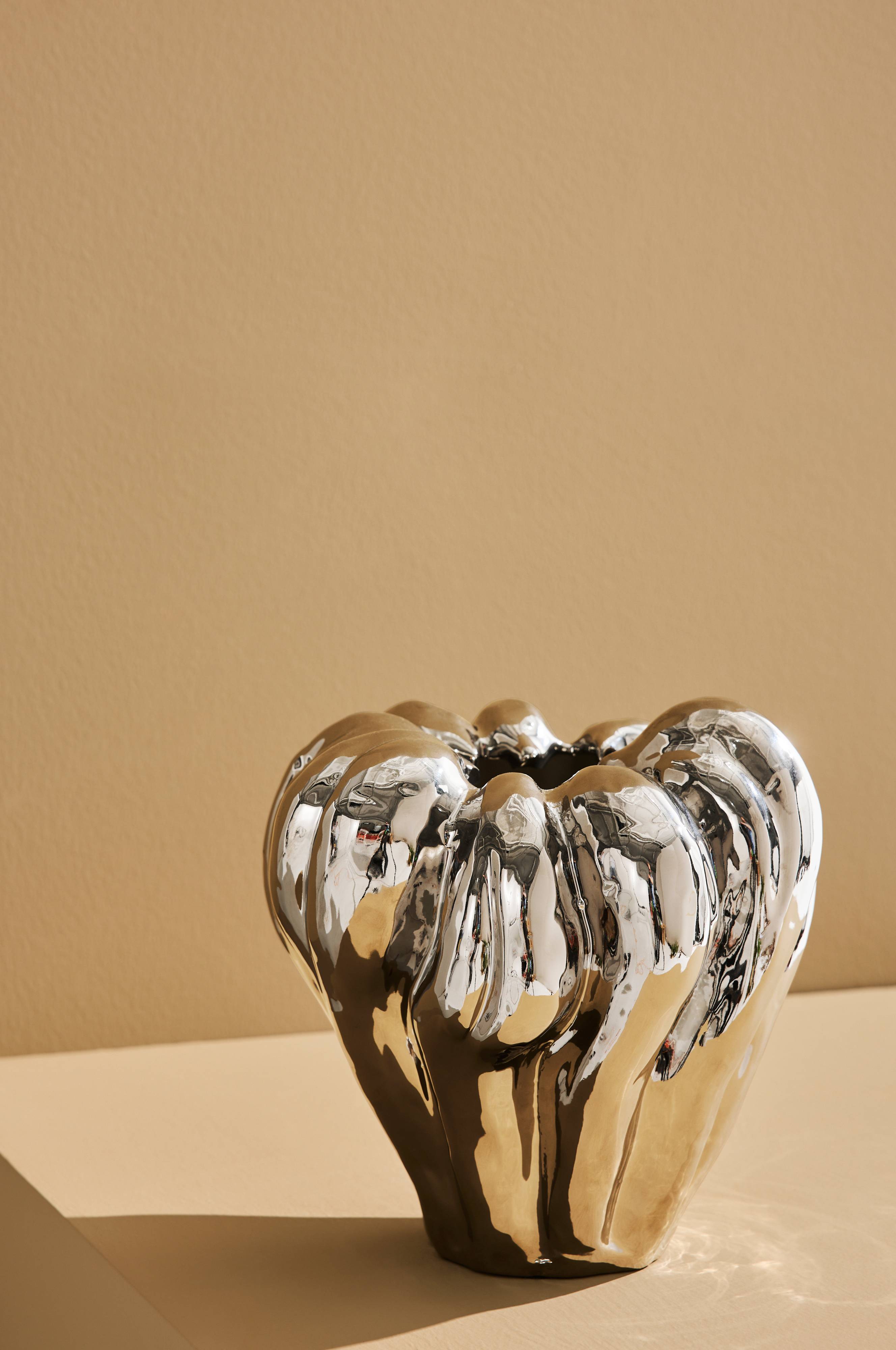 Låt vasen vara ett skulpturalt statement i sig eller använd den till dina favoritblommor. En vas som drar blickar till sig.