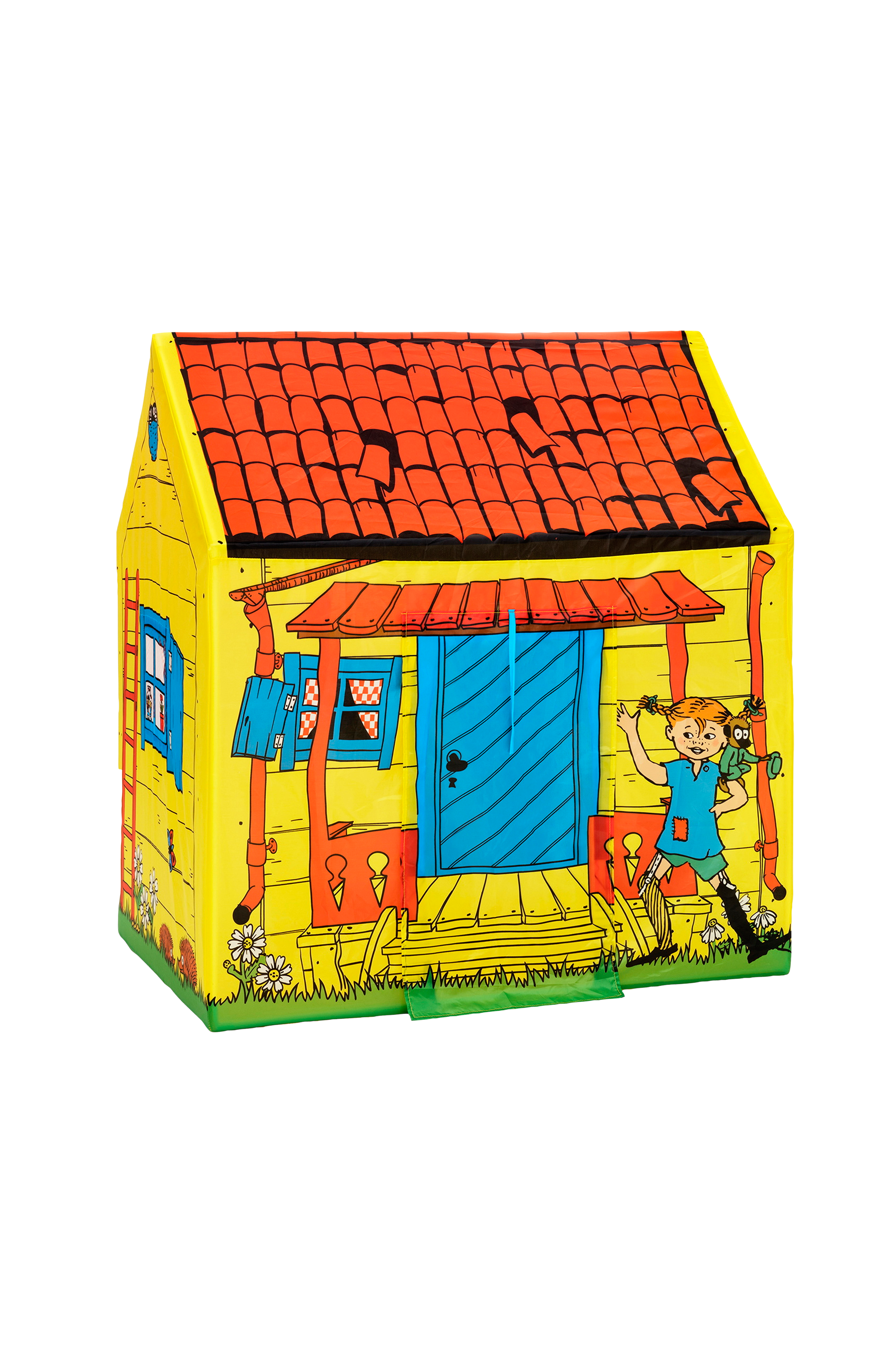 Ett klassiskt lekhus i tyg för alla busiga barn! Lek tokiga Pippi-lekar eller plocka fram favoritsagan och mys en stund i det lilla huset! Gå in och ut genom tygdörren eller rulla upp den och fäst med banden om du vill ha dörren helt öppen. Du kan också rulla upp gardinerna i de tre fönstren. Lekhuset har även ett golv av tyg. Villa Villekulla som lektält gör succé både i barnrummet och i trädgården - kanske ett gömställe när du leker kurragömma? Pippitältet är enkelt att sätta upp och ta ned.
