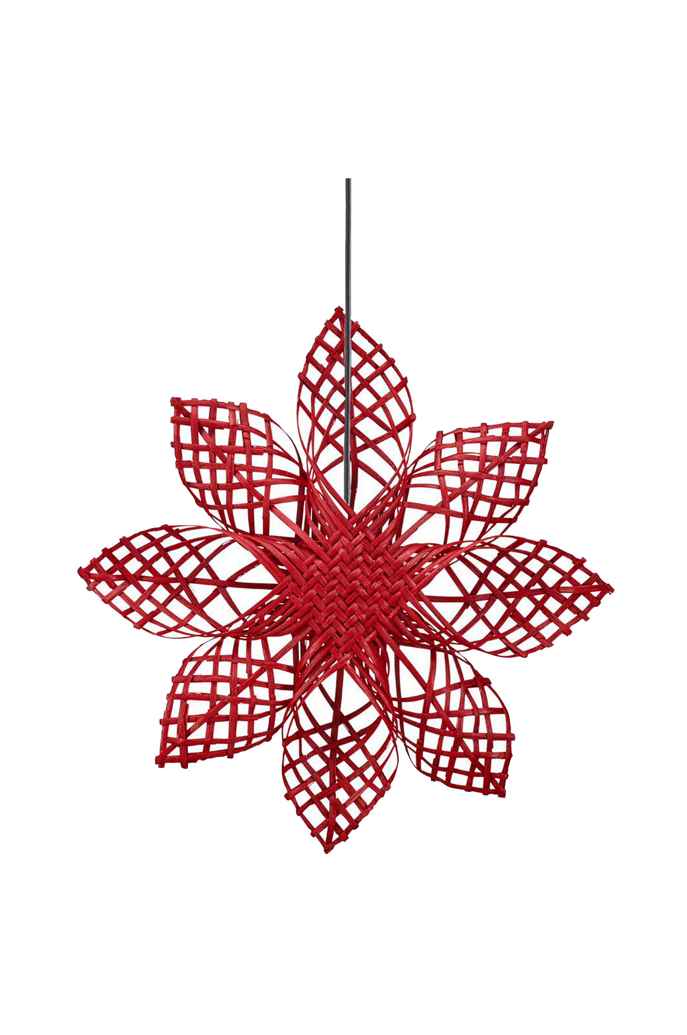 Klassisk handgjord adventsstjärna i rotting. Stjärnan kommer med en 3,5 meter lång svart plastsladd med väggkontakt. Vissa nyans- och storleksskillnader kan förekomma eftersom den är handgjord i ett naturmaterial. Höjd 45,5cm, bredd 45,5cm och djup 8cm. Skärmen är anpassad för ljuskälla med max 15W.