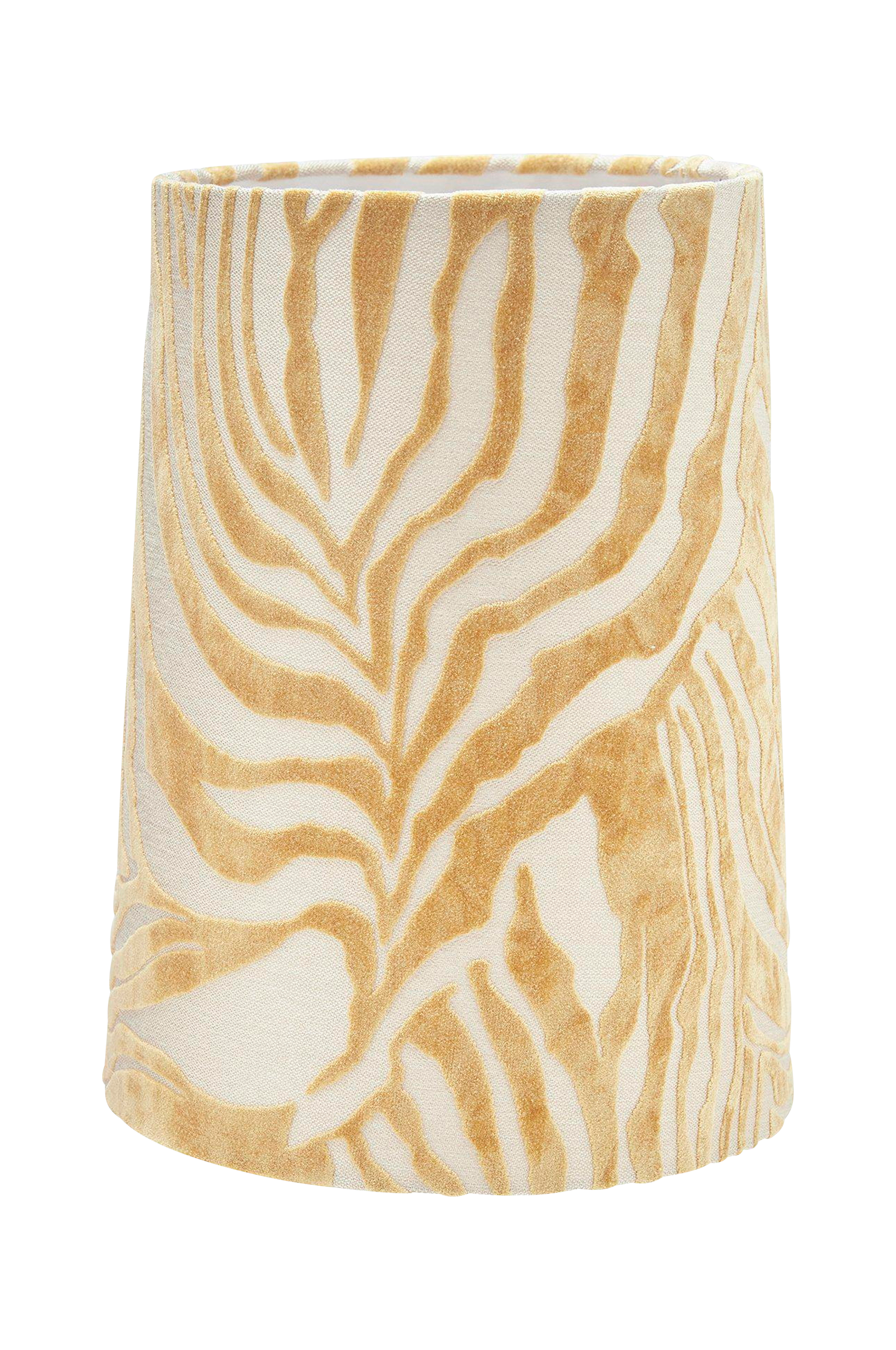 Annie lampskärm i ett zebramönstrat tyg. Skärmen har rullade kanter och invikt skarv som skapar en lyxig känsla av gediget hantverk. Skärmen är cylinderformad och har ett vitt laminat som ger ett fint sken när lampan är tänd. E27 lampfäste som sitter 4 cm från botten.