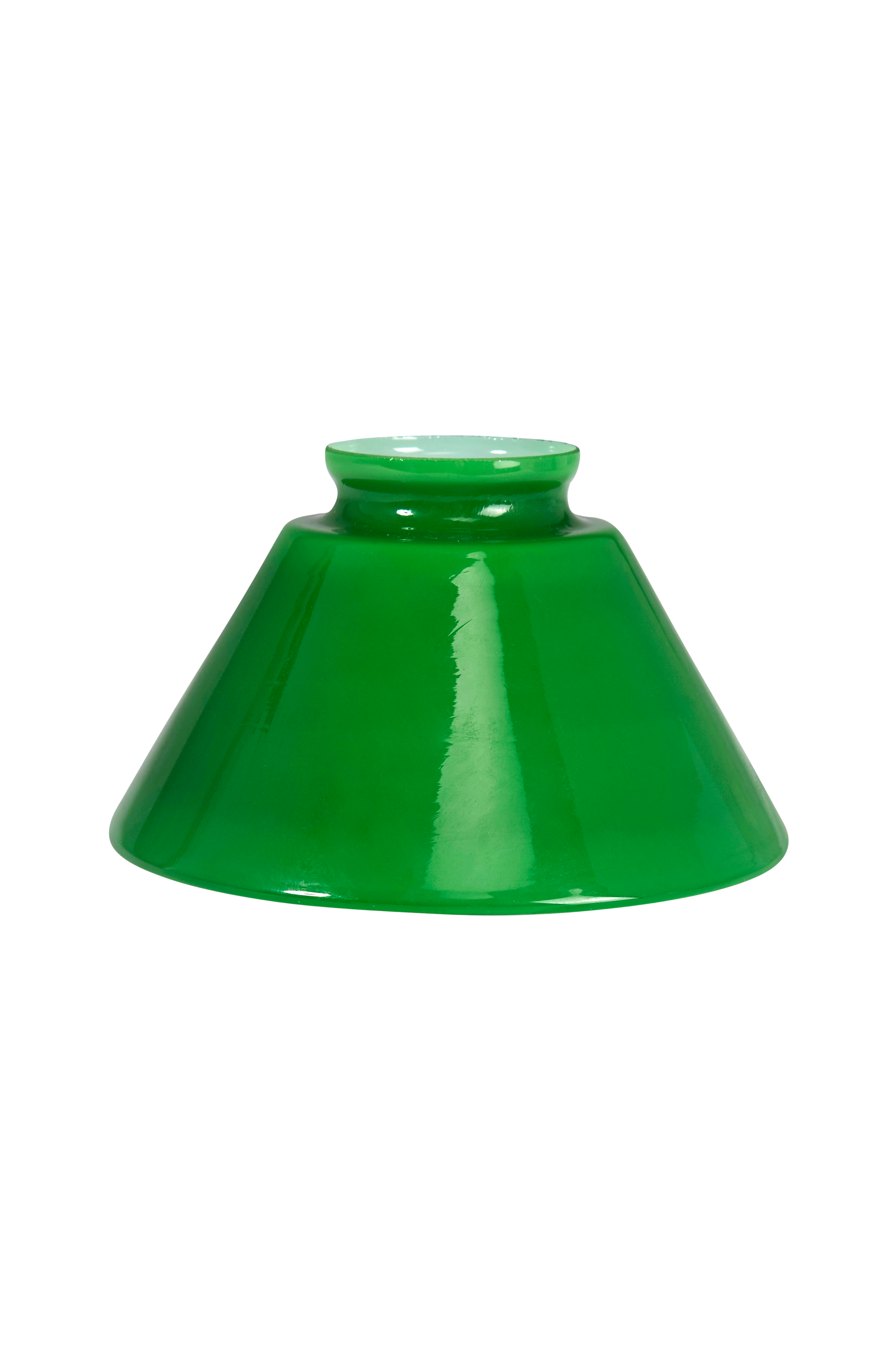 Klassisk skärm till en skomakarlampa i glas. Rejält glas som reflekterar färgen i glaset på en fint sätt och ger ett djup åt färgen. Höjd 8,5 cm och diameter 15 cm. Yttermått vid toppen va skärmen: 6,5 cm. Ljuskälla ingår ej. Fäste: Siri Lampholder.