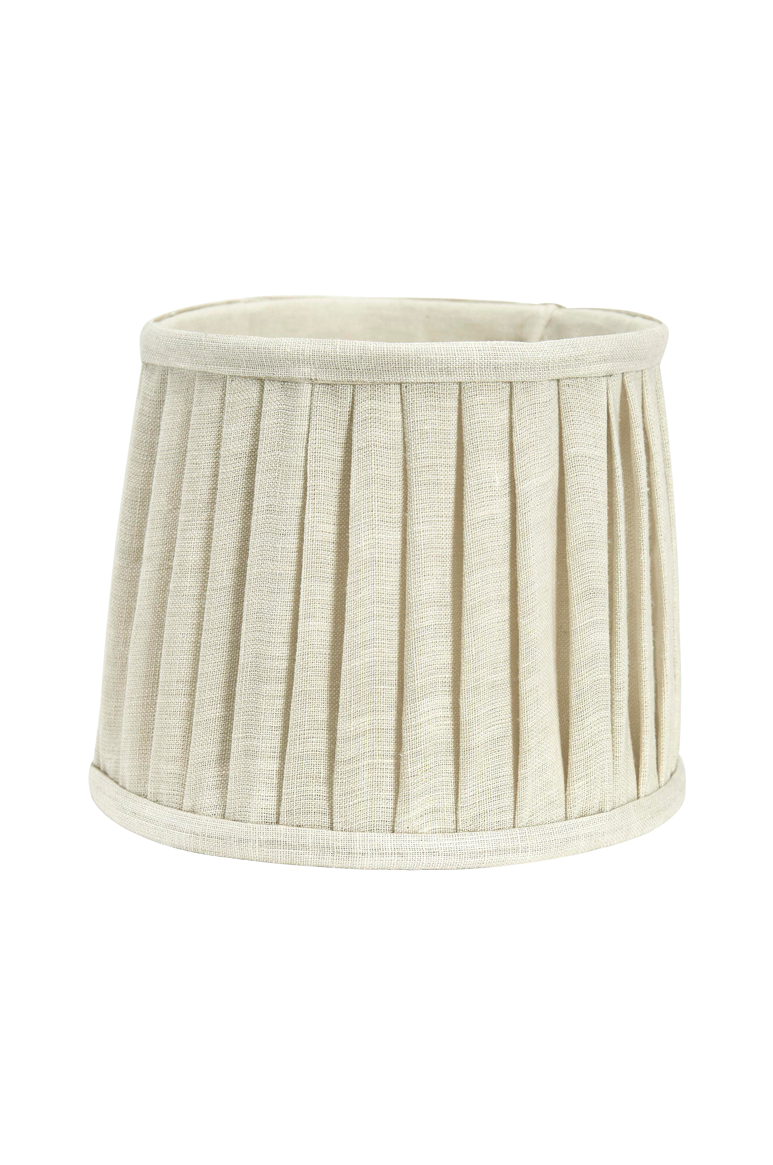 Lampskärm Sofia Plissé. Rund, höjd 18 cm. Diameter nertill 25,5 cm, upptill 22 cm. E27 ringfäste 4,5 cm från nederkant.