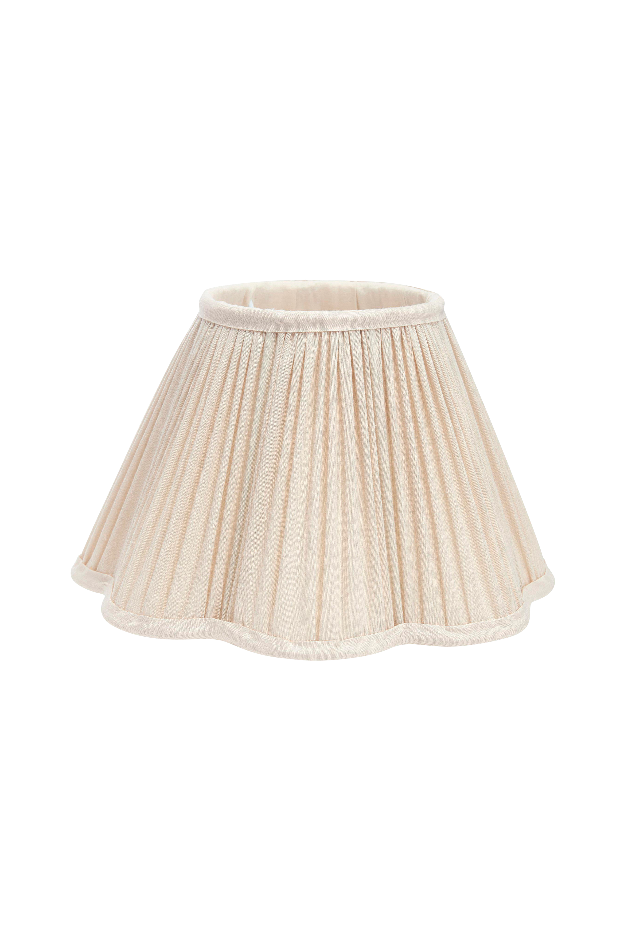 Sonja lampskärm med rynkat tyg i sidenlook och är fodrad med bomullstyg. Skärmen har en vågig form nedtill som skapar ett fint flöde av ljuskällan. Skärmen har ett E27 ringfäste.
