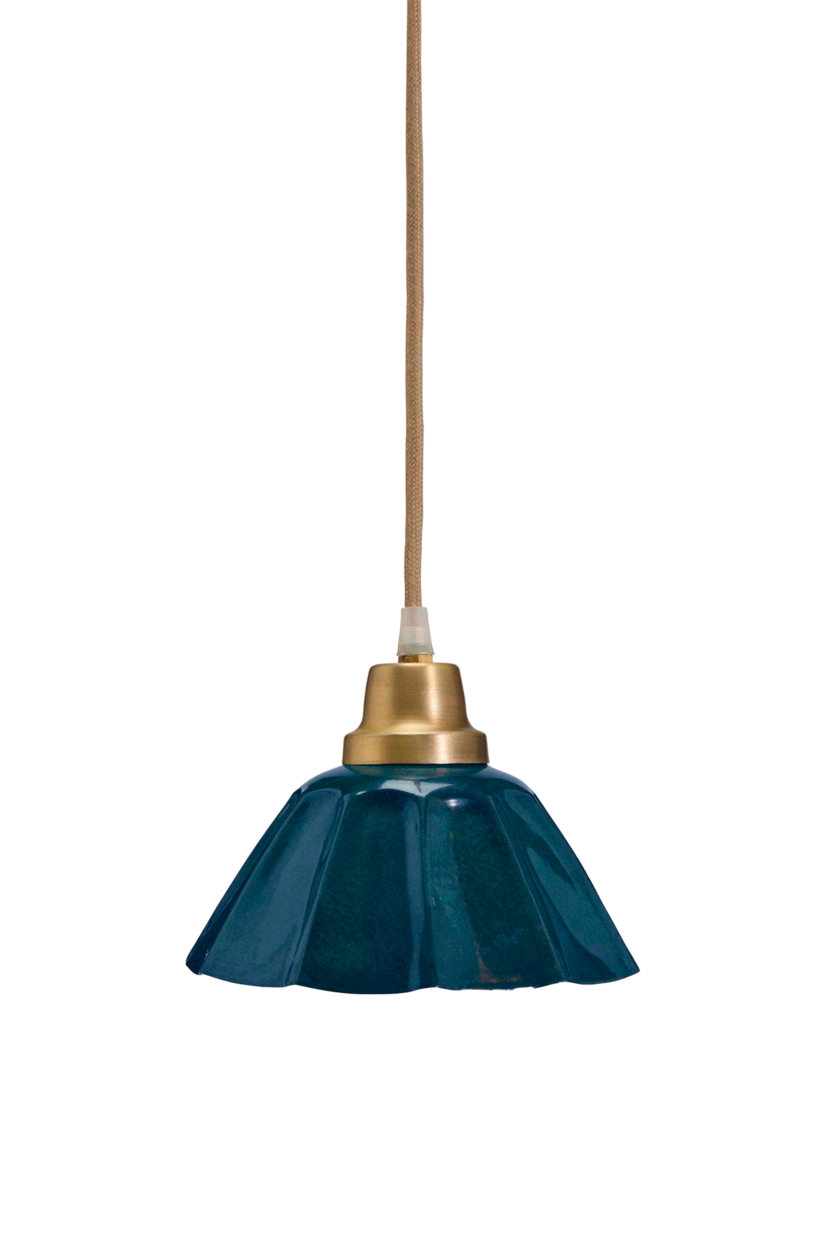 Liten taklampa ester i metall med en emaljfinish som imiterar marmor. Varje exemplar är unikt. Vintage-känsla med tillägg av mässingsfärgad metall. Diameter i botten 17,5 cm, höjd 15 cm. 3,5 m textilsladd med upphängningskrok och platt eu-kontakt. E27-sockel, max 25w. Ip20. Ljuskälla ingår ej.