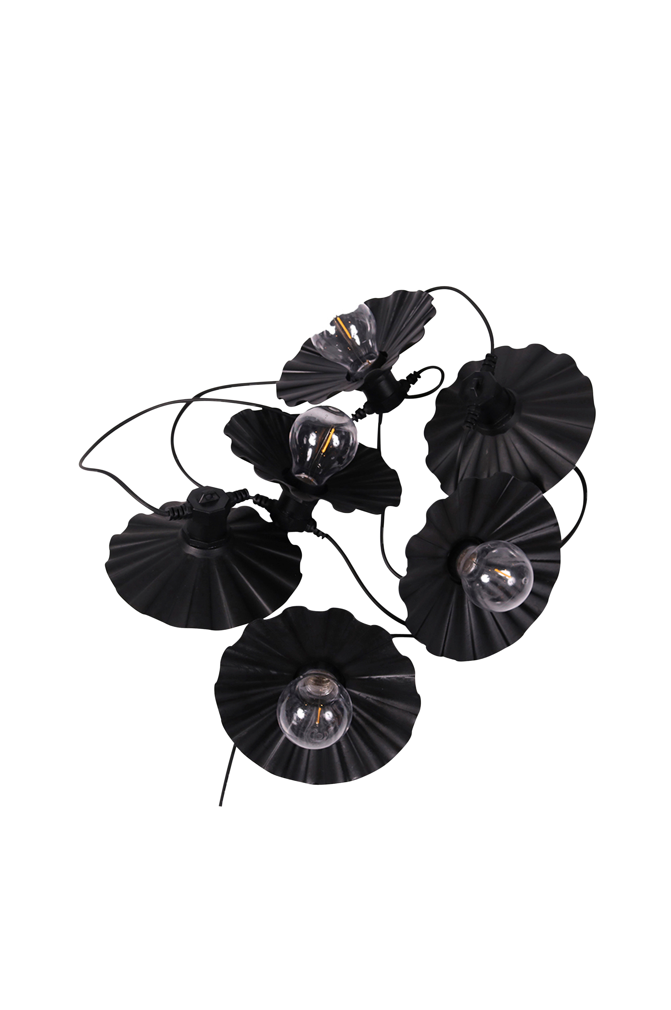 Daisy ljusslinga, en charmig partyslinga med 6 st LED lampor och fastmonterade metallskärmar för utom- eller inomhusbruk. Nu kan du skapa den perfekta mysiga och ombonade stämningen på din uteplats, inne eller ute till festen. IP44. Längd 7,2 meter med 3 meter till 1:a lampan och sedan 0,7 meter mellan varje lampa ochen avslutande "svans" på 0,7 meter. Lamporna går ej att byta ut.