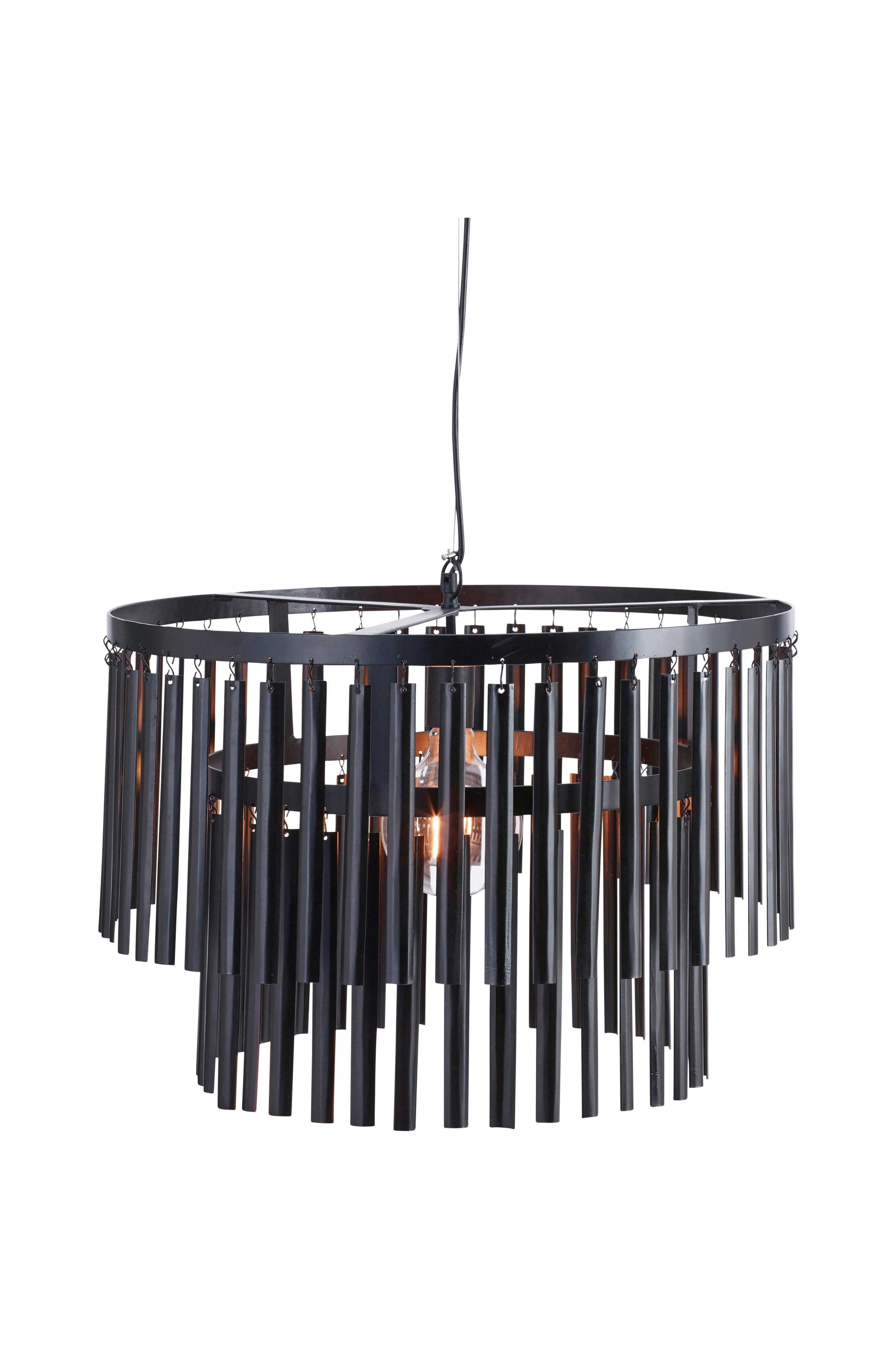 Takkrona Marlow, modern takkrona i metall med hängande stavar av metall i två lager. 1 meter svart plastkabel och metallvajer. E27 lamphållare, max 40W. IP20. Kommer med takkopp för krokupphäng. Takkoppens diameter är 11,5 cm. Takkontakt köpes separat. Ljuskälla ingår ej. Man monterar själv metallstavarna. Diameter 60 cm och höjd 43 cm. Jordad.