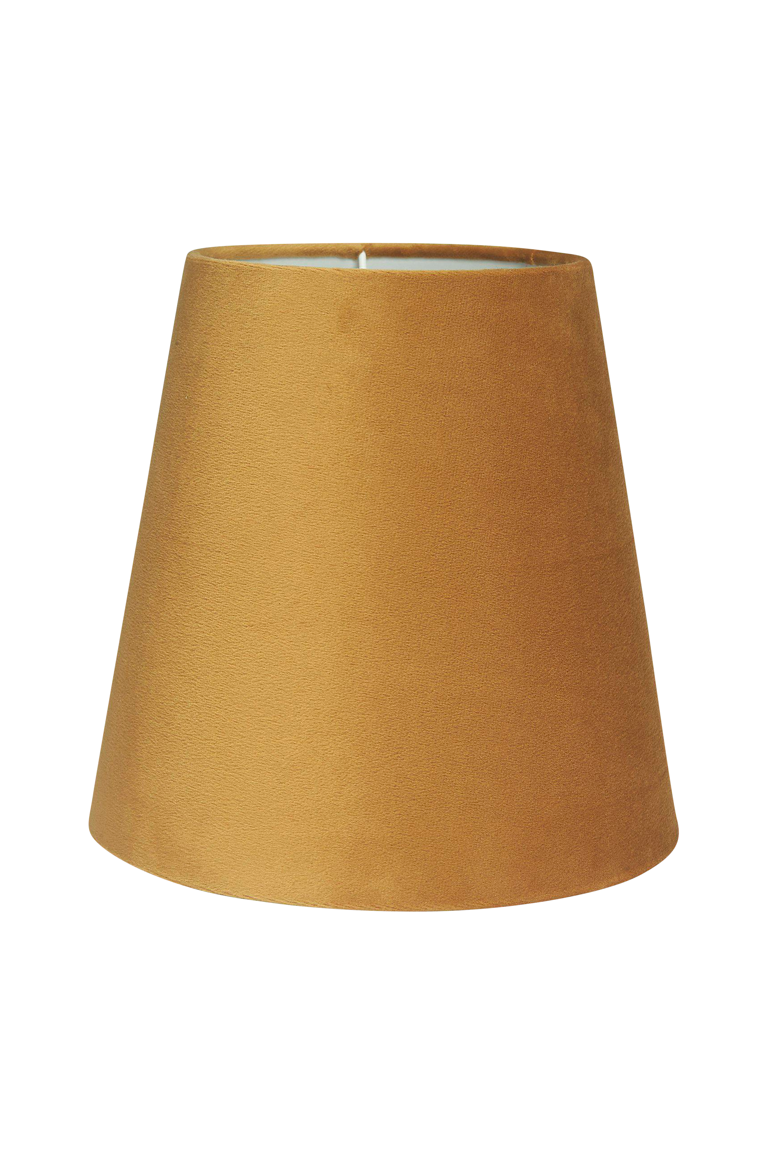 Toppringskärm Cia i sammetstyg. Kan användas till golvfot med böjbar arm och vägglampa. Lampskärmen har en E27 toppring. Höjd 19 cm, Bredd 20/13 cm, Djup 20/13 cm.