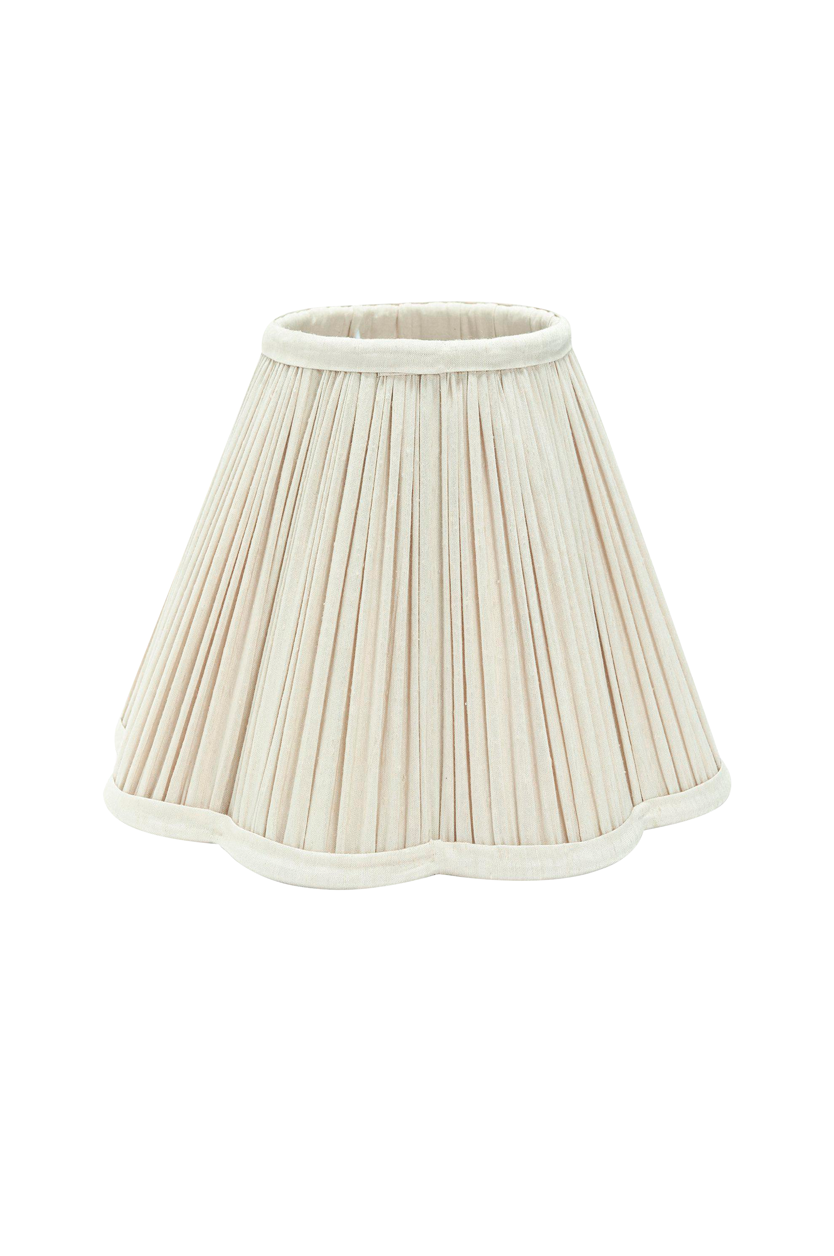 Siv lampskärm med rynkat tyg i sidenlook och fodrad med bomullstyg i samma färg. Skärmen har en vågig form nedtill som skapar ett fint flöde av ljuskällan. Lampskärmen har ett toppringsfäste och kan användas till golvfot med böjbar arm, vägglampa och bordslampa med böjbar arm. Det går även att kombinera denna skärm med ett takupphänge med E27 lamphållare och på så sätt använda den som fönster -och taklampa. E27 toppringsfäste. Höjd 17,5 cm, bredd nertill 30 cm, bredd upptill 14 cm.