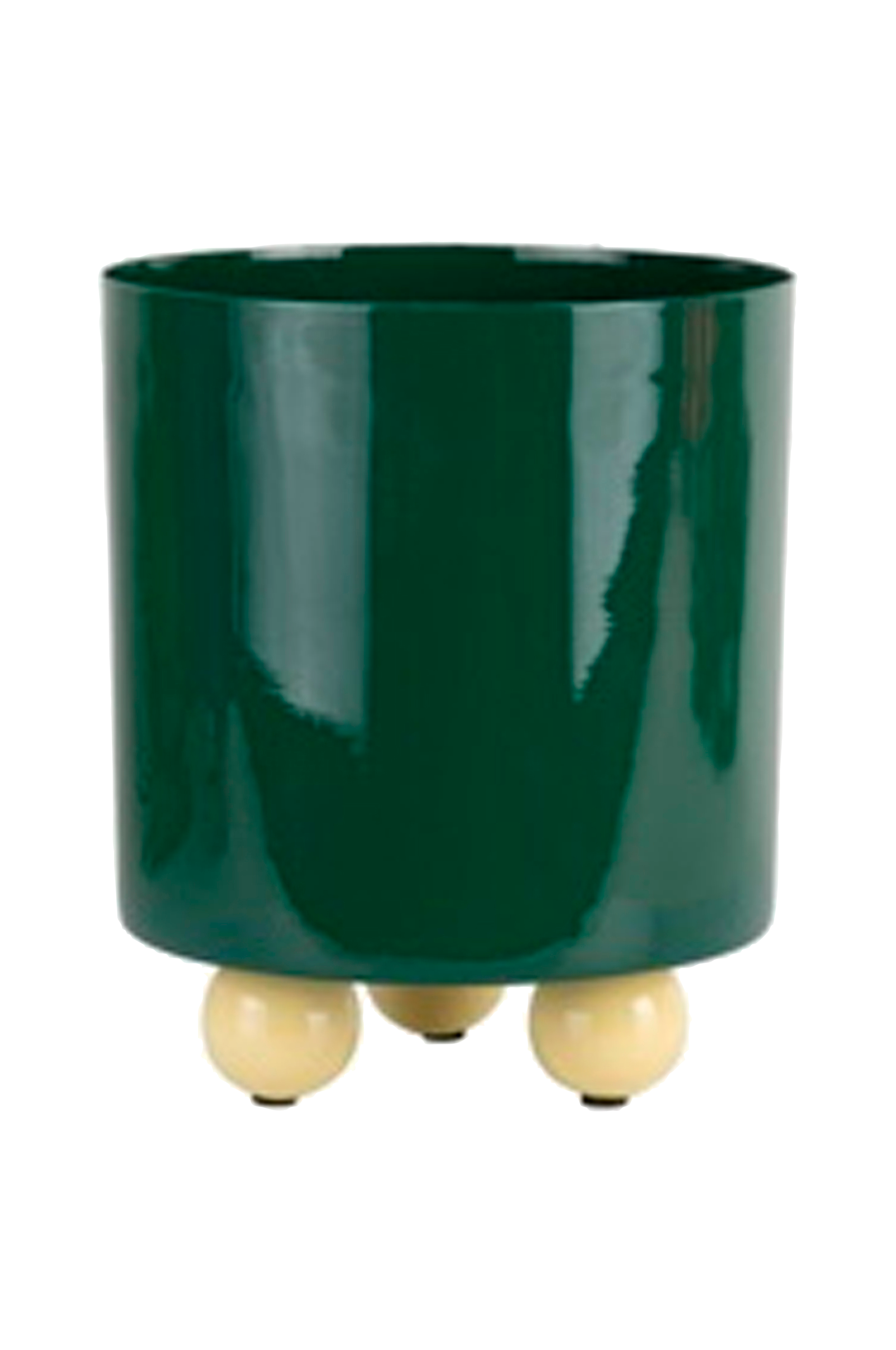 Nutid double funky liten blomkruka. En effektfull planteringskruka som finns i tre olika storlekar. Krukan står på klotformade fötter. I somriga, livfulla färger. Varje del har två kontrasterande färger. En härligt unik design.
