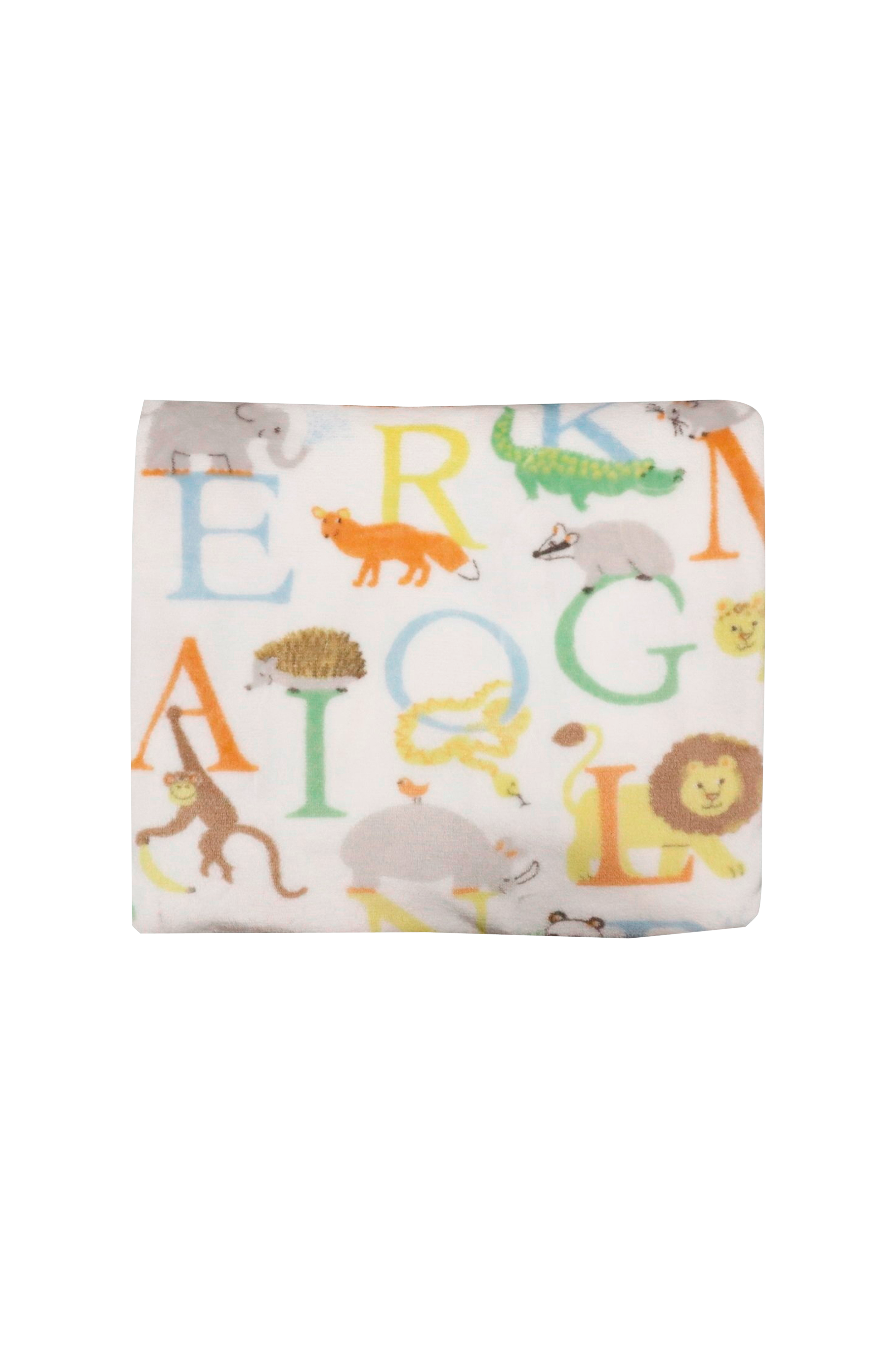 Mjuk och mysig pläd med ett lekfullt alfabetmönster med charmiga djur - designad av en svensk designer.