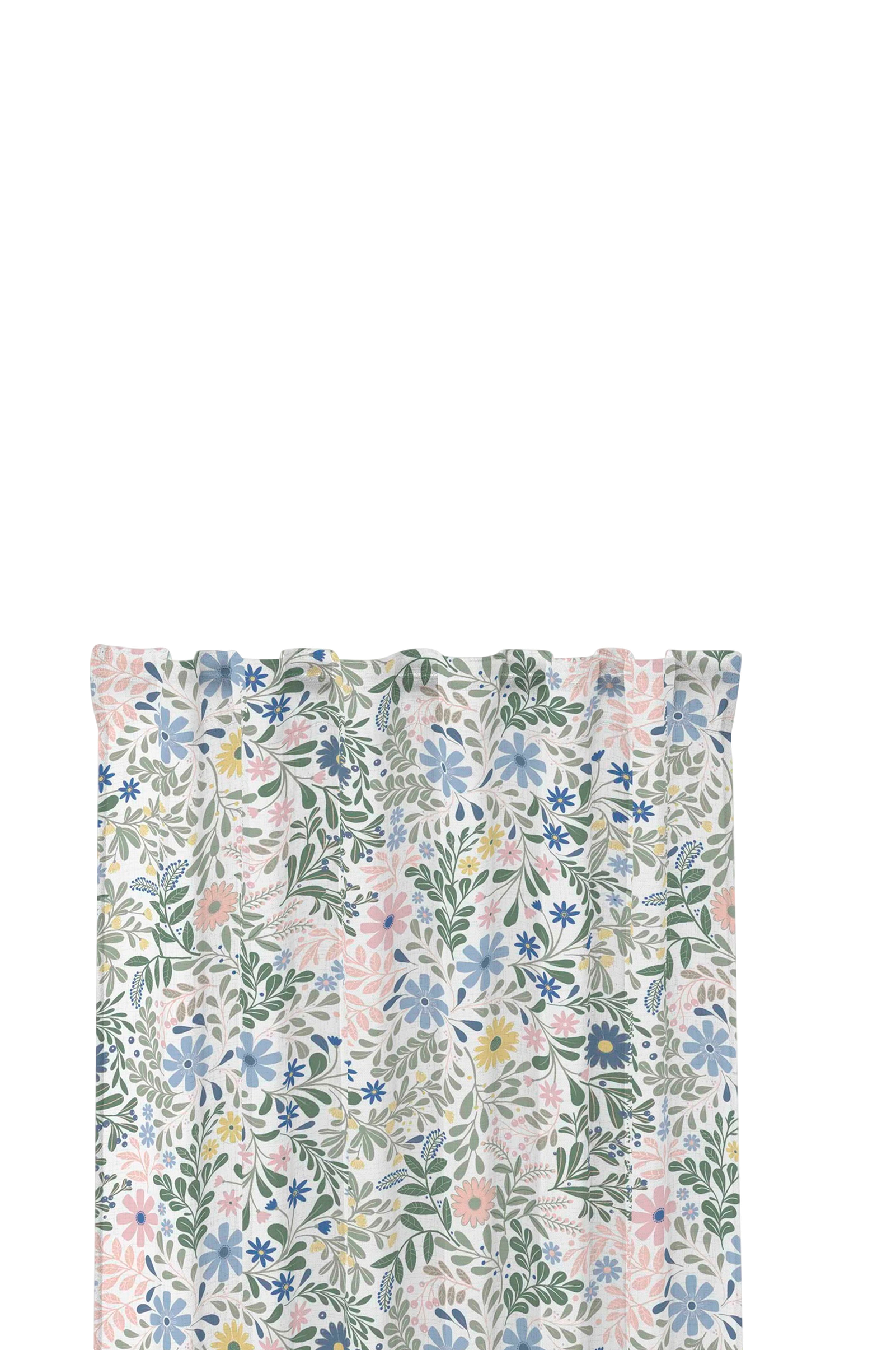 Färdigsydda gardiner, 2-pack, i ett livfullt blommigt mönster. Tryckt på tvåvägs slub-tyg för en vacker slub-struktur. Mönstret är skapat av en svensk designer.