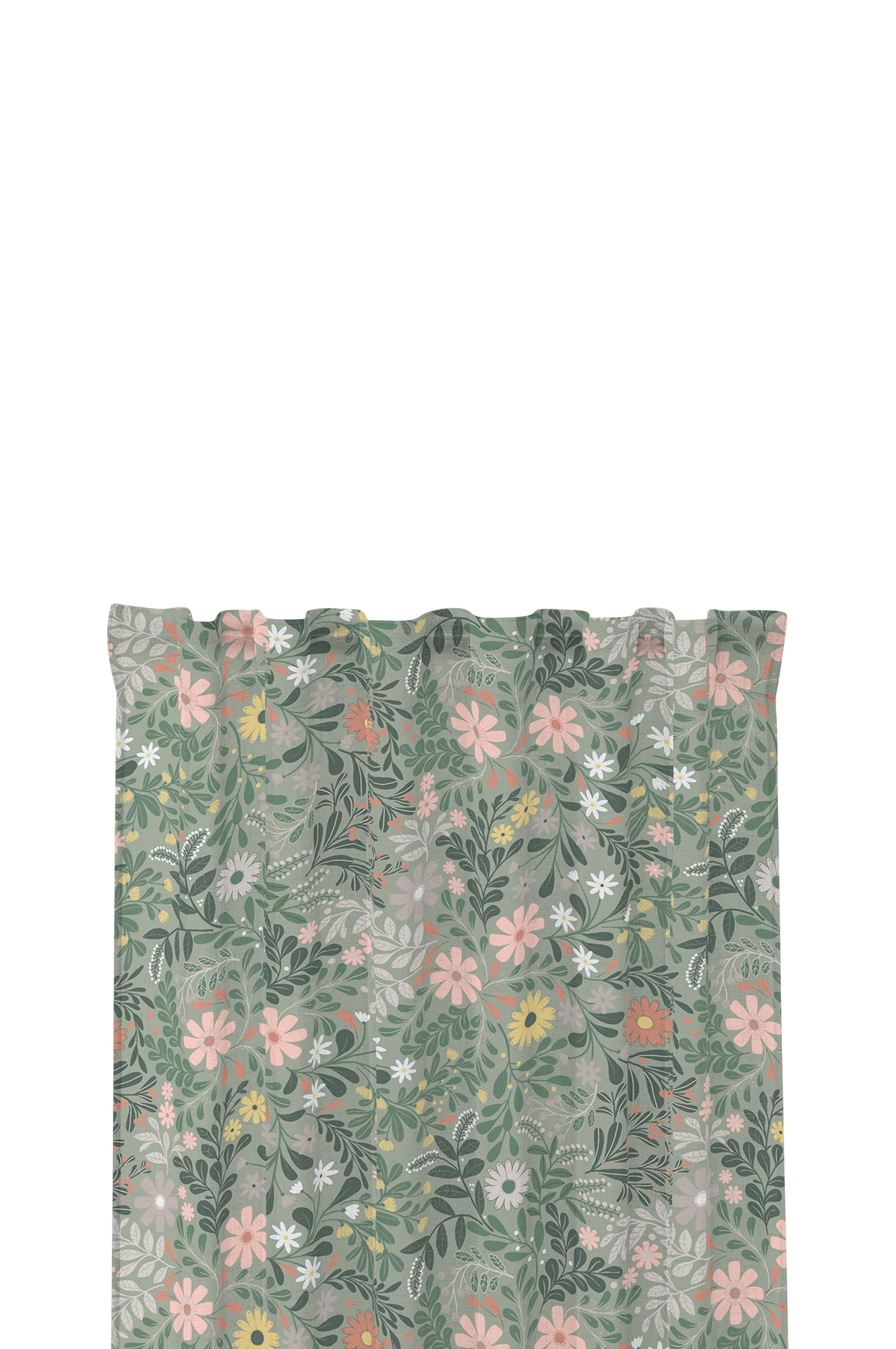 Färdigsydda gardiner, 2-pack, i ett livfullt blommigt mönster. Tryckt på tvåvägs slub-tyg för en vacker slub-struktur. Mönstret är skapat av en svensk designer.