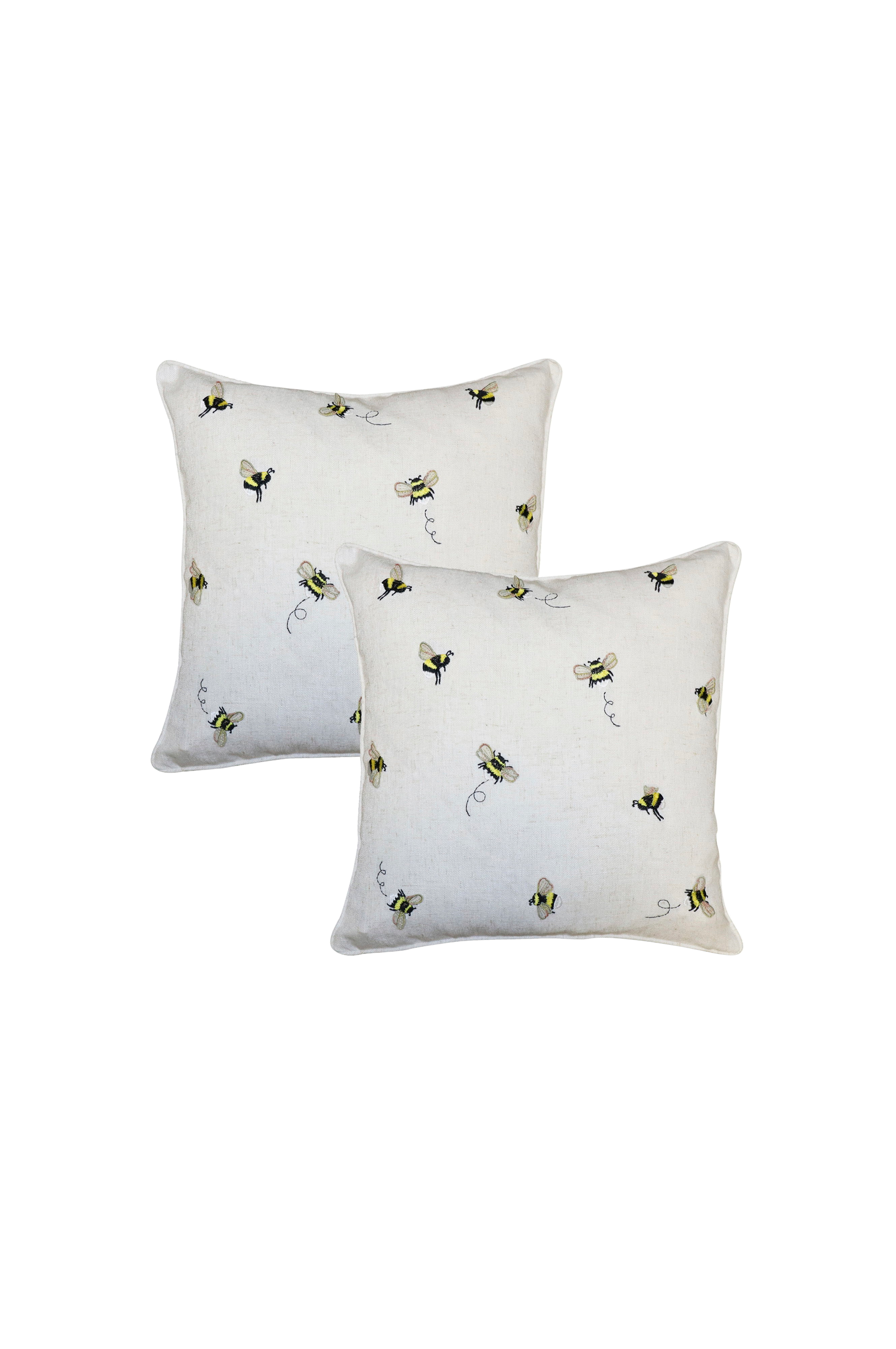 Kuddfodral med broderade humlor med '3d wings' på framsidan. Enfärgad passpoal och dold dragkedja i nederkant, 2-pack.
