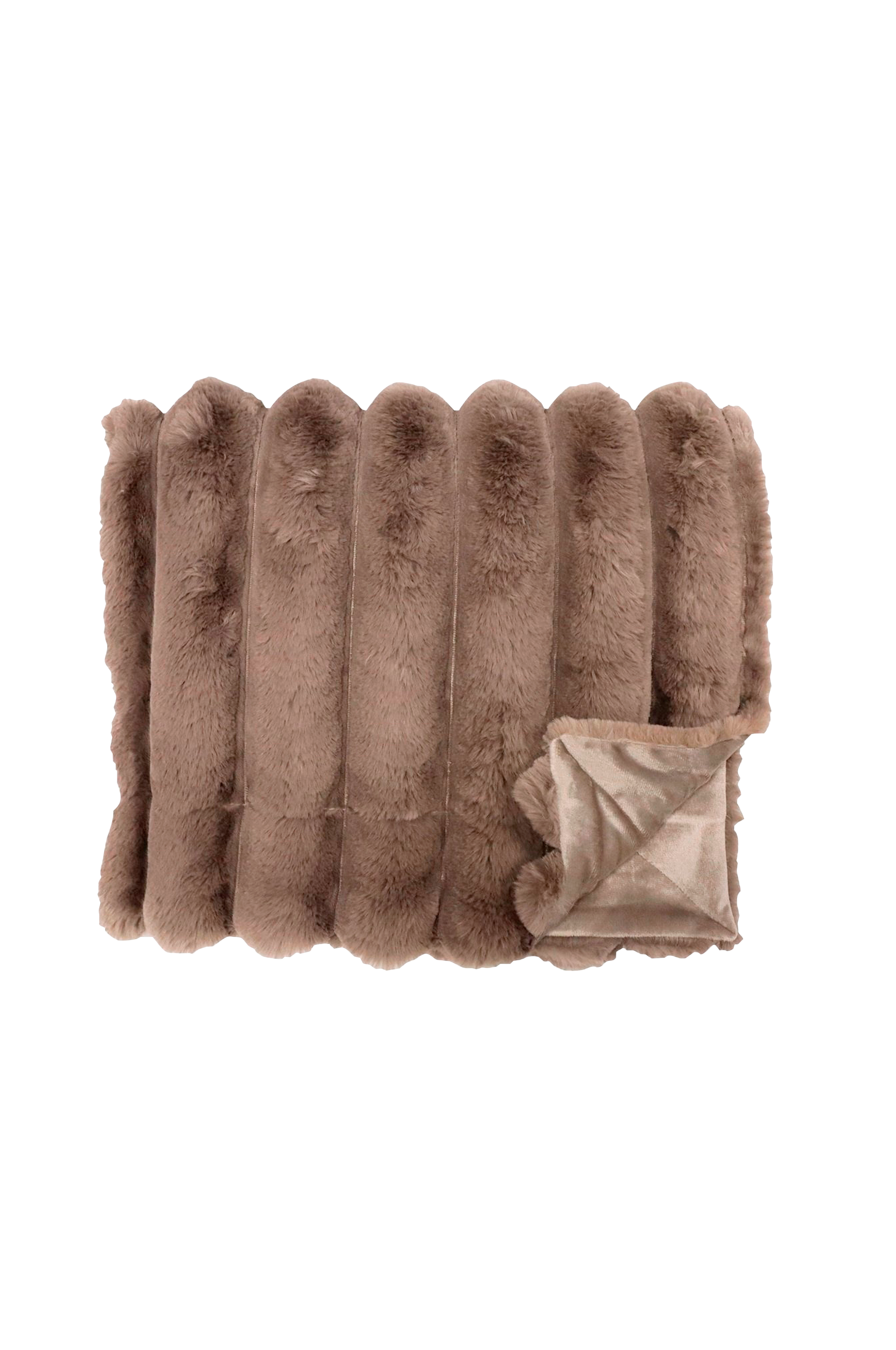 Lyxig filt med extra mjukt fuskpäls i breda ränder på framsidan. Baksidan är klädd med mjukt mikrominktyg.