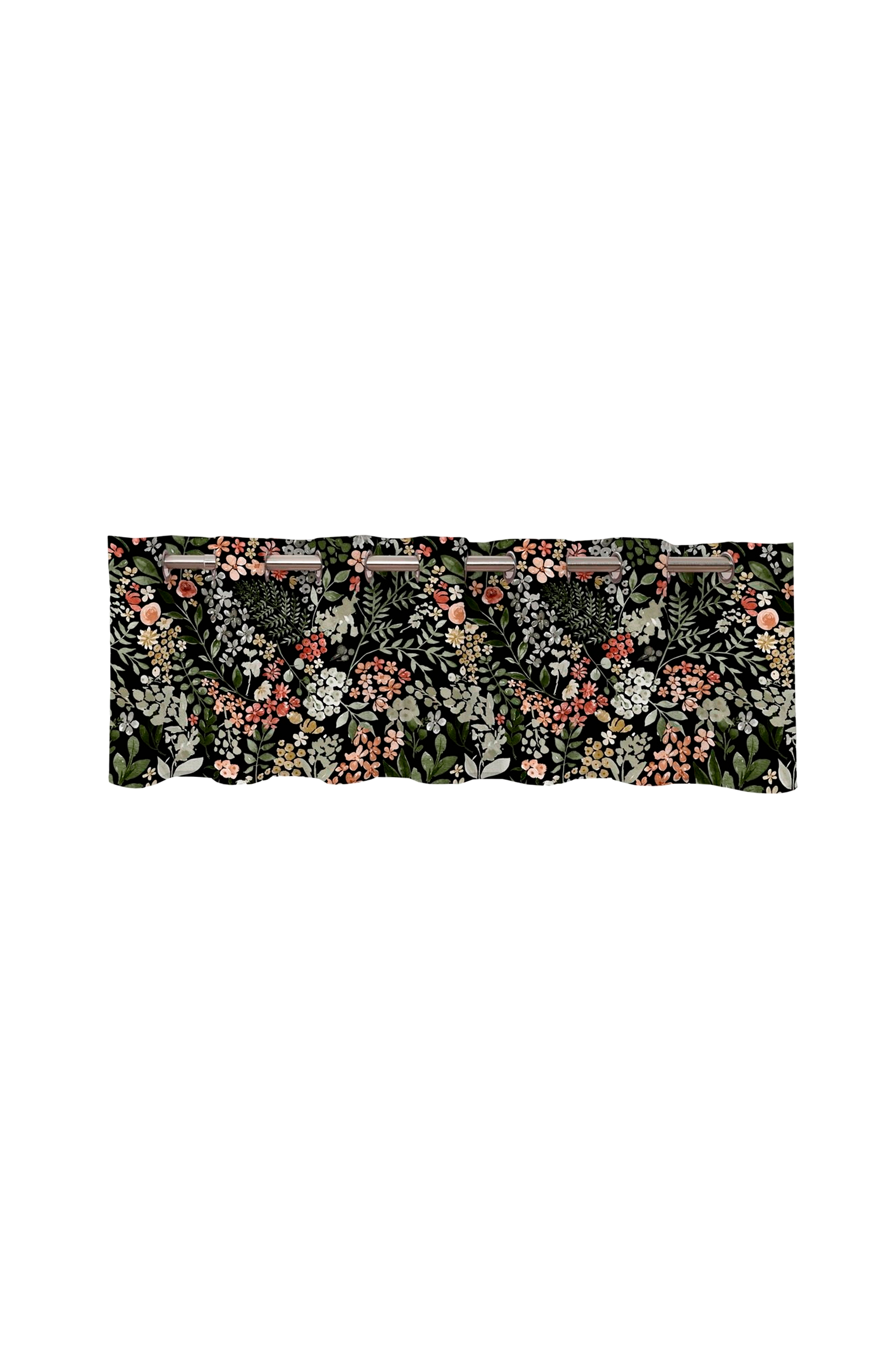 Flerfärgad volang med öglor och ett vackert blommönster. Tryckt på vårt tyg av paris-kvalitet med slub-effekt.
