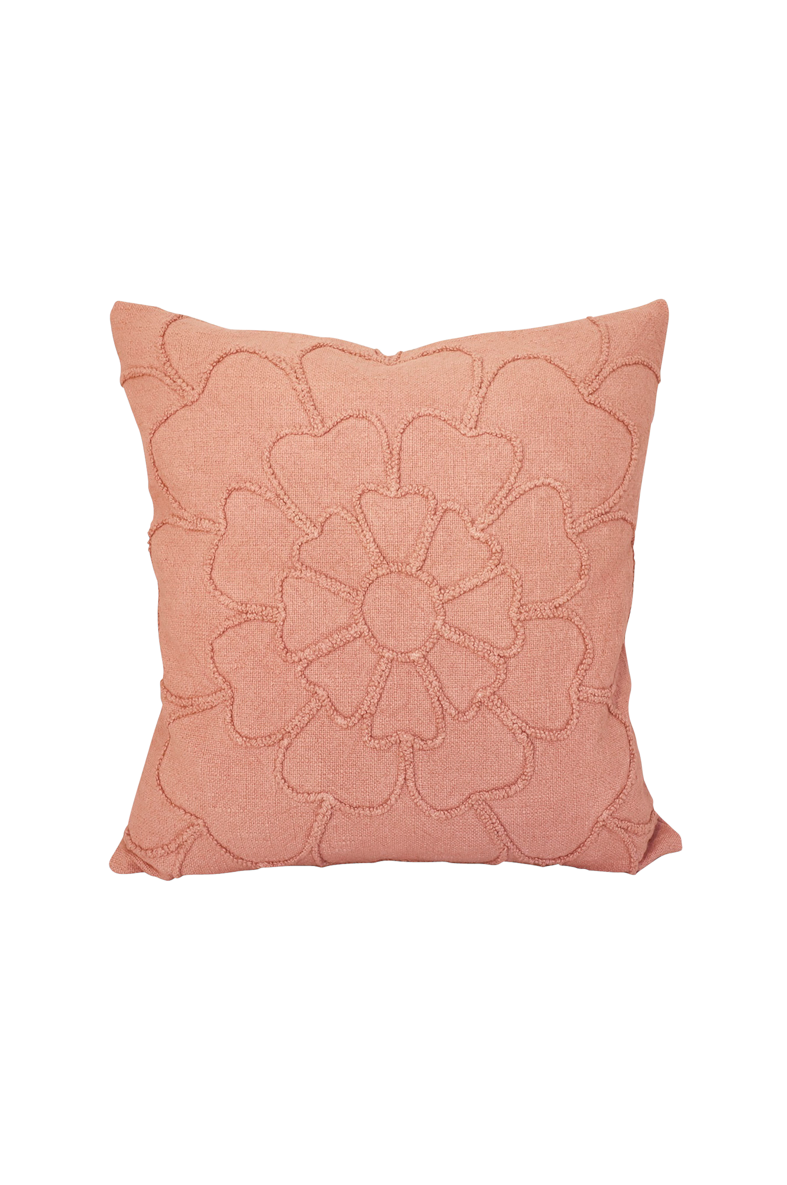 Vackert kuddfodral med detaljer i 3d-effekt som påminner om en blomma. Enfärgad baksida och dold dragkedja baktill, 2-pack.