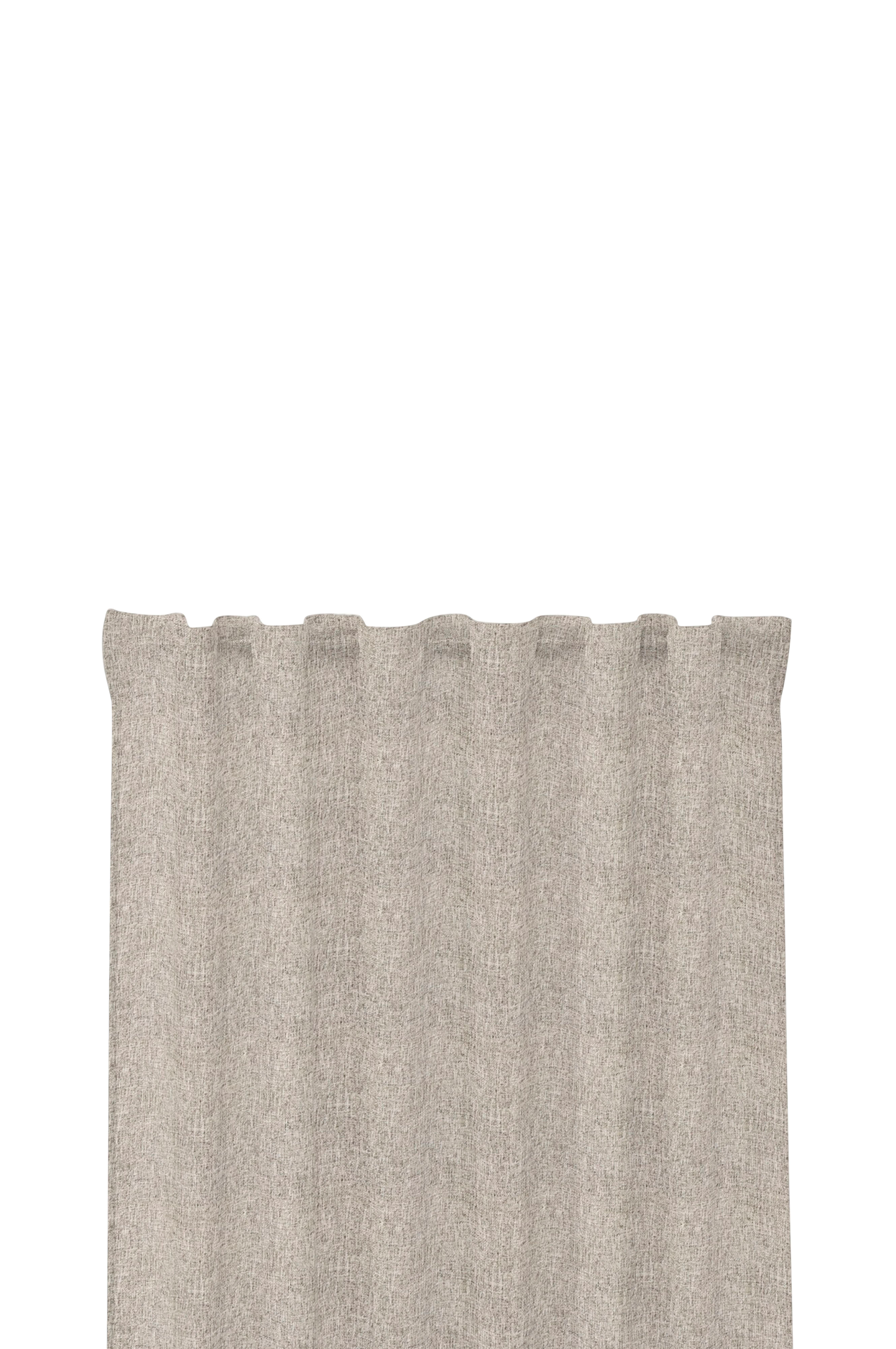 Konfektionerad multiheader-gardin, 1-pack, med överlockad fåll. Mörkläggande tyg med melangeeffekt.