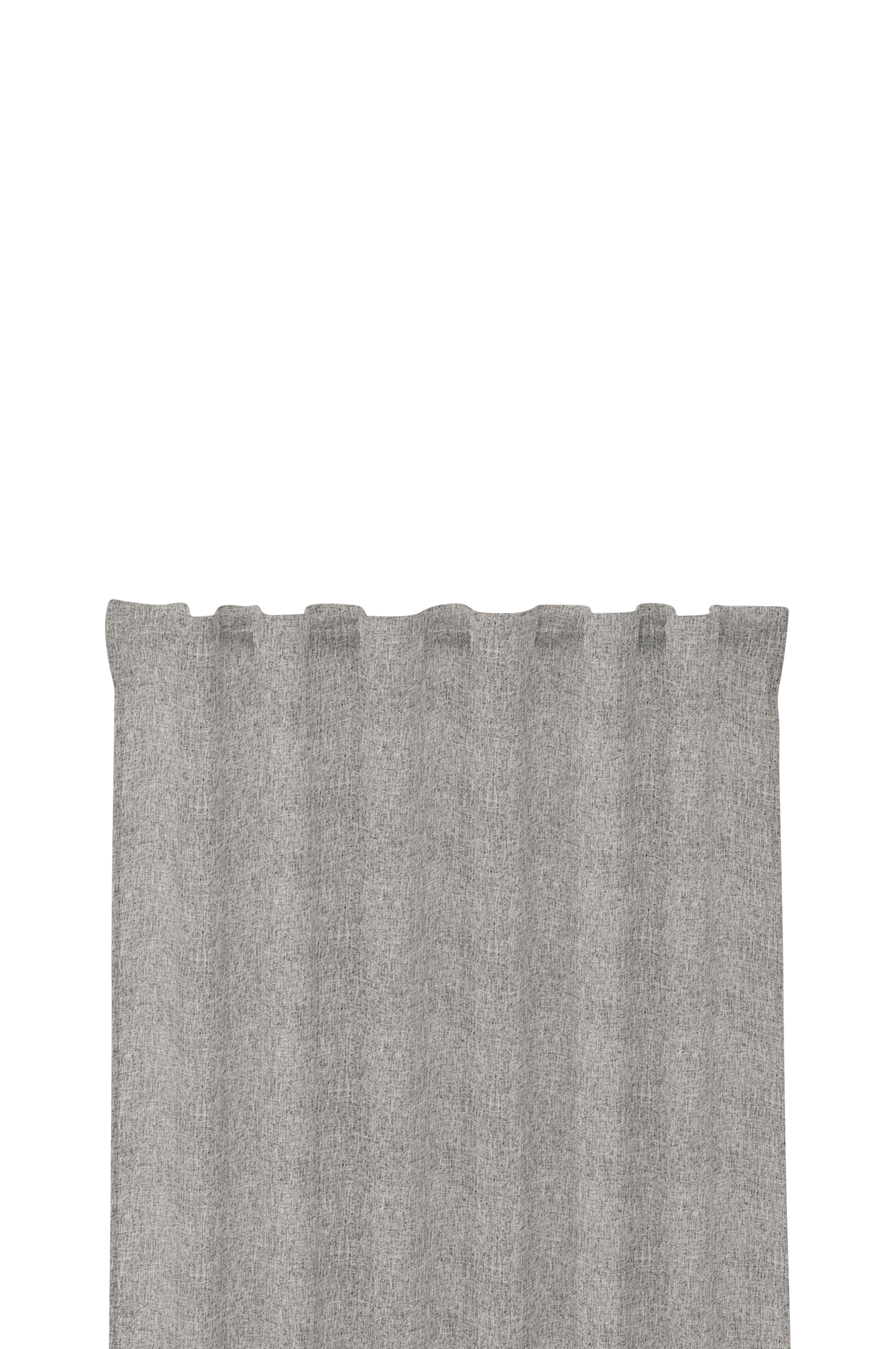 Konfektionerad multiheader-gardin, 1-pack, med överlockad fåll. Mörkläggande tyg med melangeeffekt.