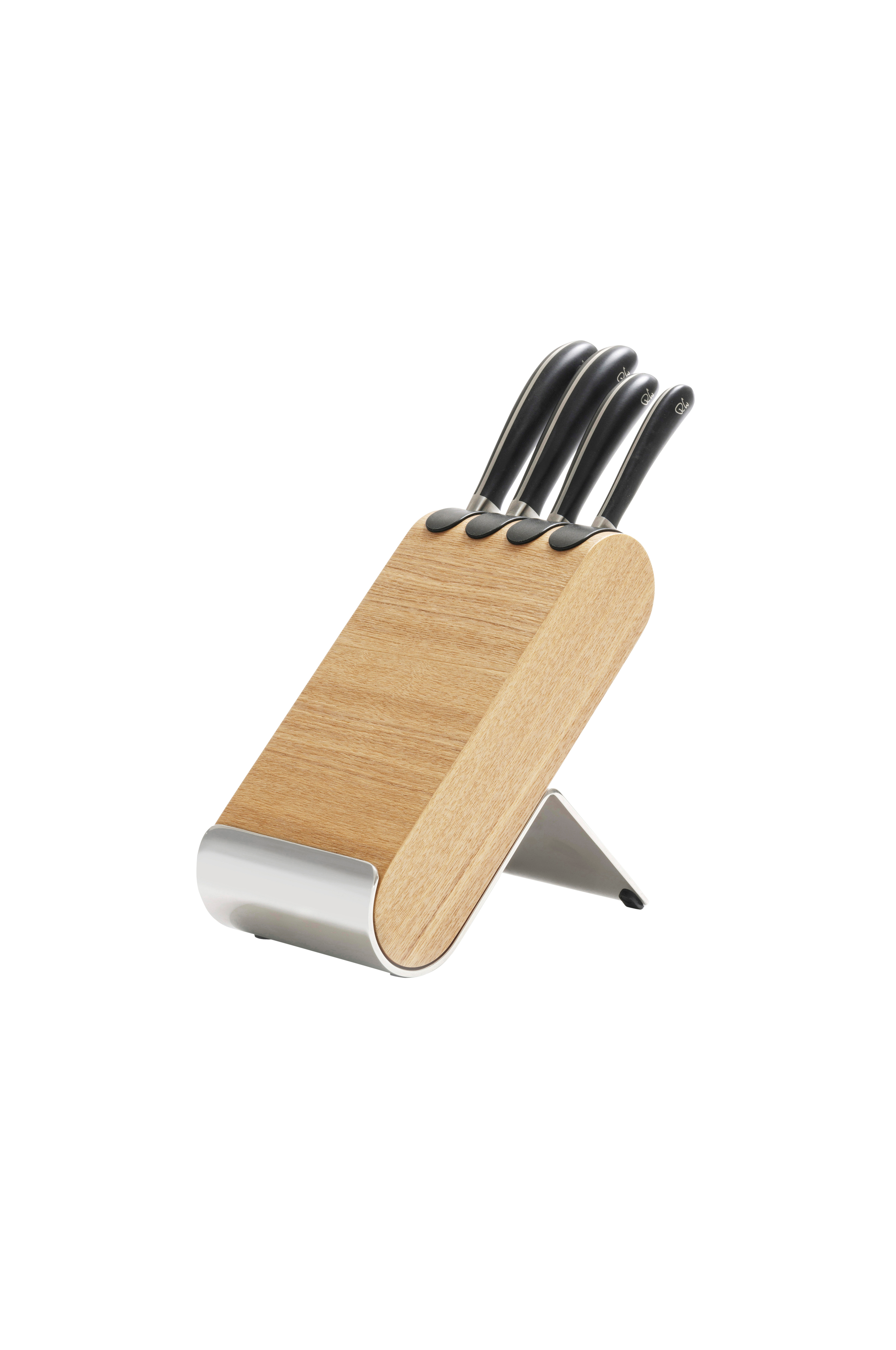 "Q" är ett nytt prisbelönt knivblock i Signature-serien från Robert Welch, med en innovativ deisgn som kombinerar trä med stål och gör det till ett visuellt slående tillägg till alla köksbänkar. Magneter i blocket gör det extra skonsamt för knivkanterna och förhindrar skador på skäreggen när du sätter in eller tar ut knivar, vilket gör att skäreggen förblir skarp.
