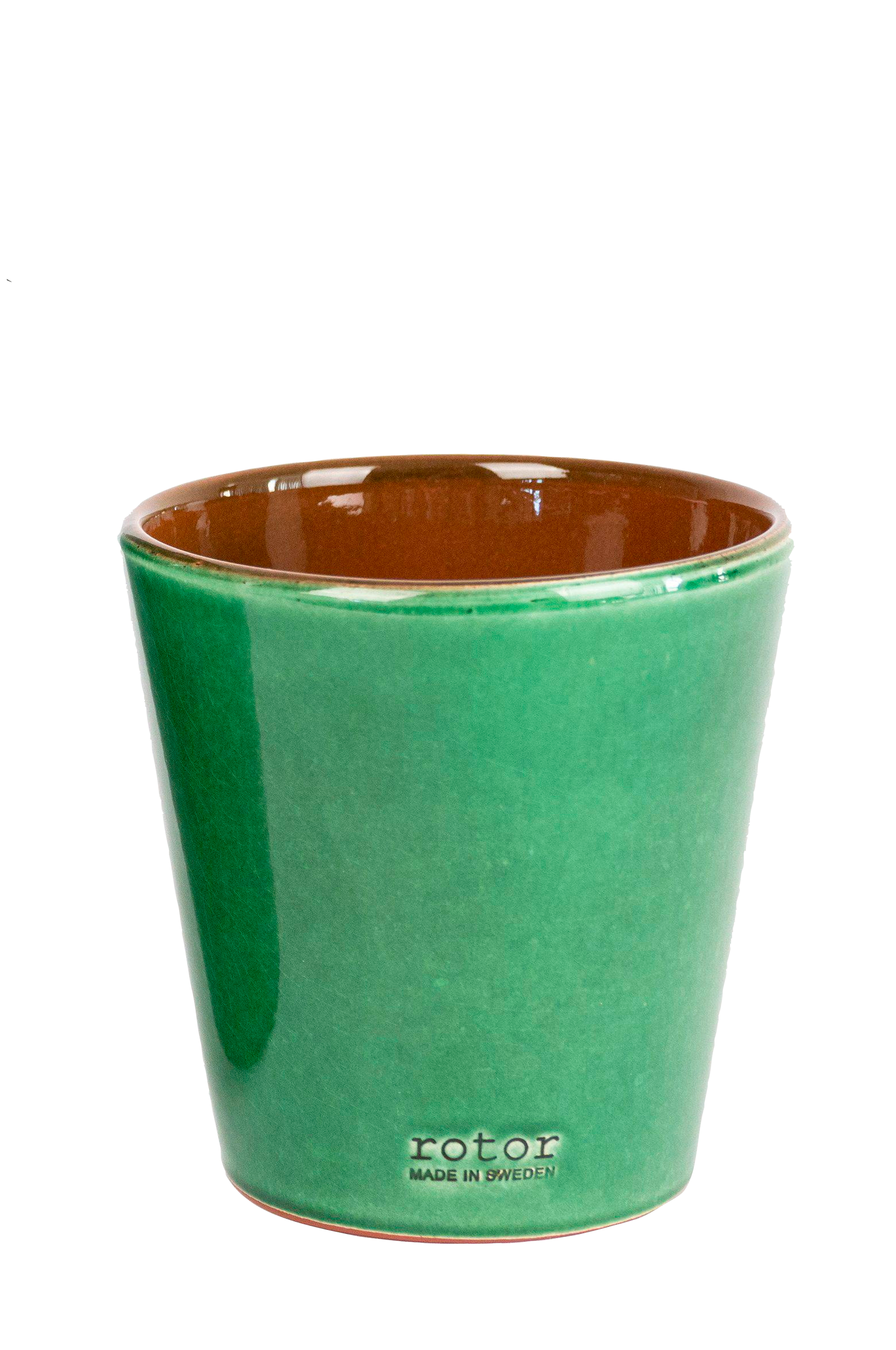 Liten blomkruka "plant by rotor" - en elegant liten kruka i svartglaserat lergods, glaserad både in- och utvändigt. Utsidan har en subtil "rotor"-reliefstämpel i botten, vilket ger krukan en exklusiv och unik känsla. Perfekt för små växter eller som en dekorativ detalj i ditt hem.