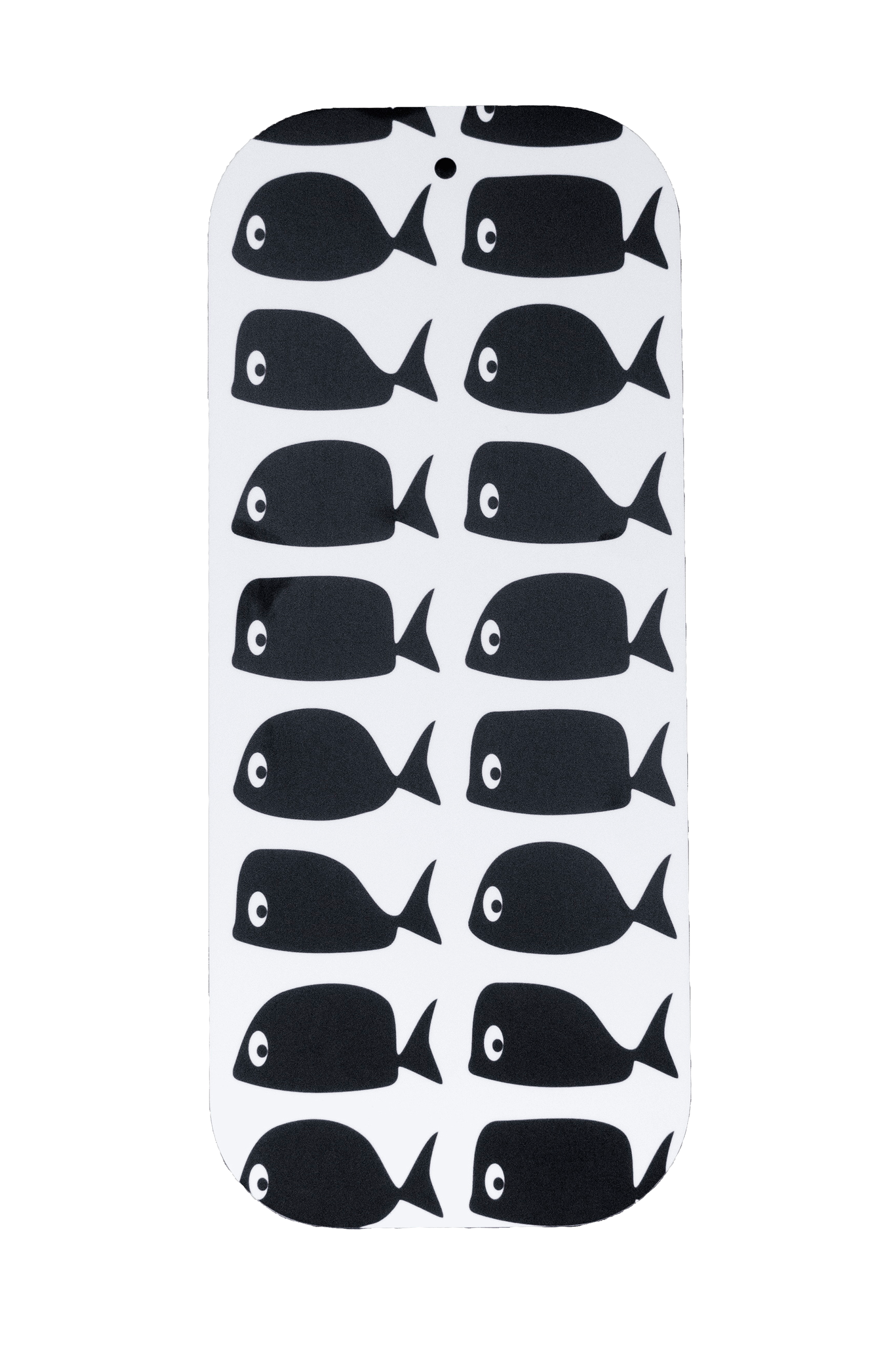 Skärbräda "whale by rotor" - en snygg och praktisk skärbräda tillverkad av mdf med svarta kanter för ett modernt utseende. Dess storlek på 40x17 cm gör den bekväm för både matlagning och servering. Omsorgsfullt tillverkad i Färjestaden, Sverige.