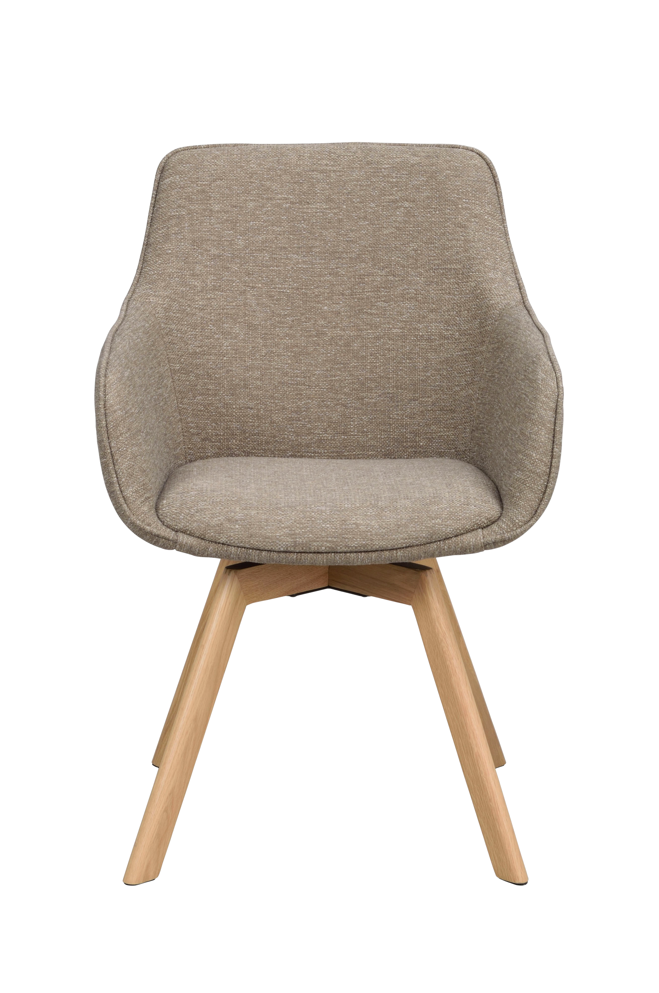 Alison-stolen med armstöd i ljusbeige tyg, som liknar den populära Alison-stolen, har en 360-graders vridbar bas. Den konturerade, vadderade sitsen och de höga armstöden ger komfort och en mysig sittupplevelse. Alison-stolen med armstöd och träunderrede är lätt att kombinera med andra trämöbler i ditt hem. Träet inuti sitsen och det lackerade bruna ekunderredet består av 100 % FSC®-certifierat trä. Säljs endast i 2-pack.