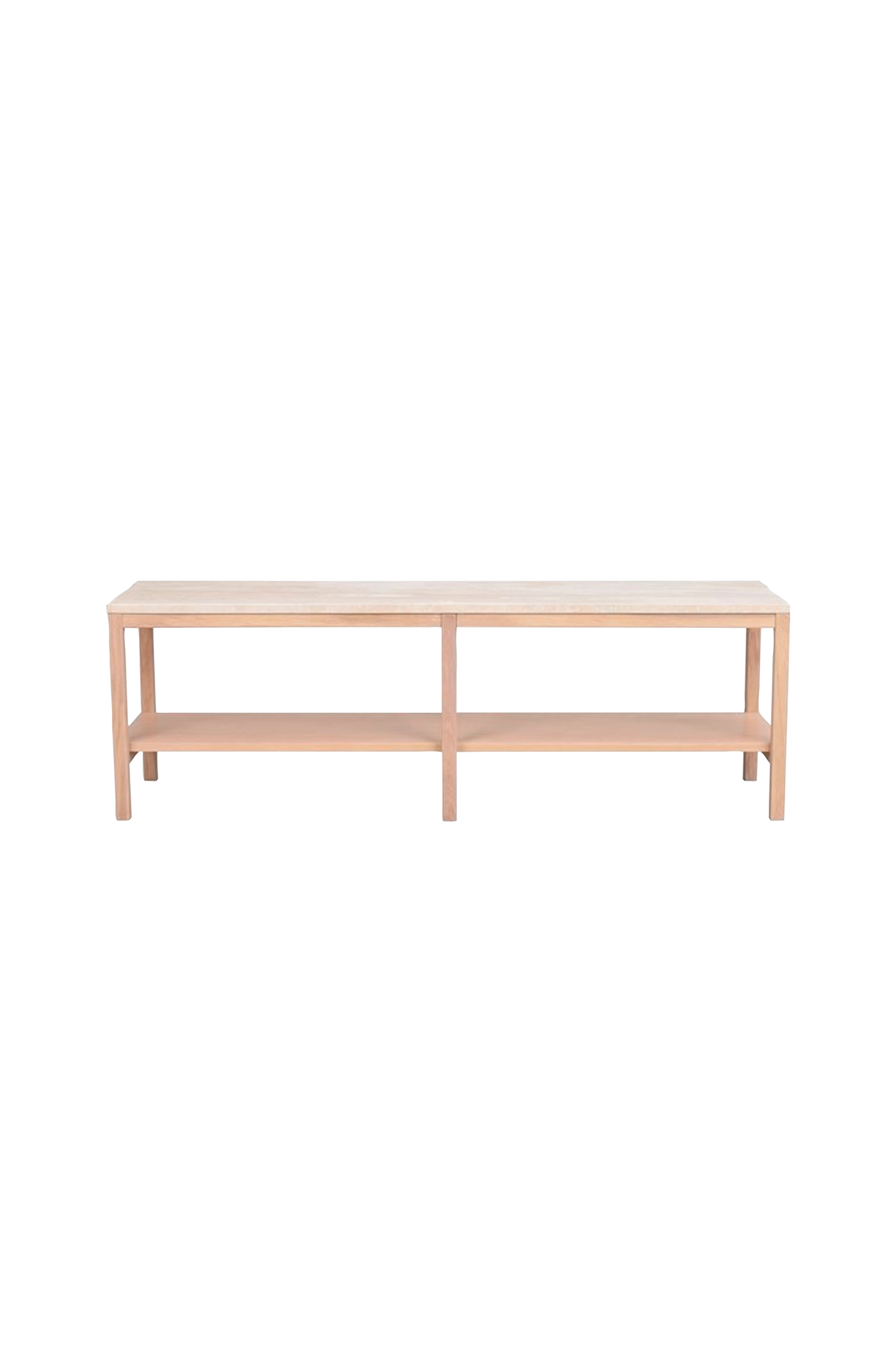 Avlastningsbordet Orwell höjd 45 cm har en exklusiv stenskiva av sandfärgad travertin från Italien som vilar på en stomme av FSC-certifierad ek. Travertin är en kalkstenstyp med fina skiftningar som ger avlastningsbordet en naturlig skönhet och med tiden unik patina. Den låga höjden passar perfekt framför ett fönster eller varför inte som tv-bänk? Orwel andas skandinavisk design med det enkla och eleganta formspråket där hållbara material förenas i en vacker helhet.