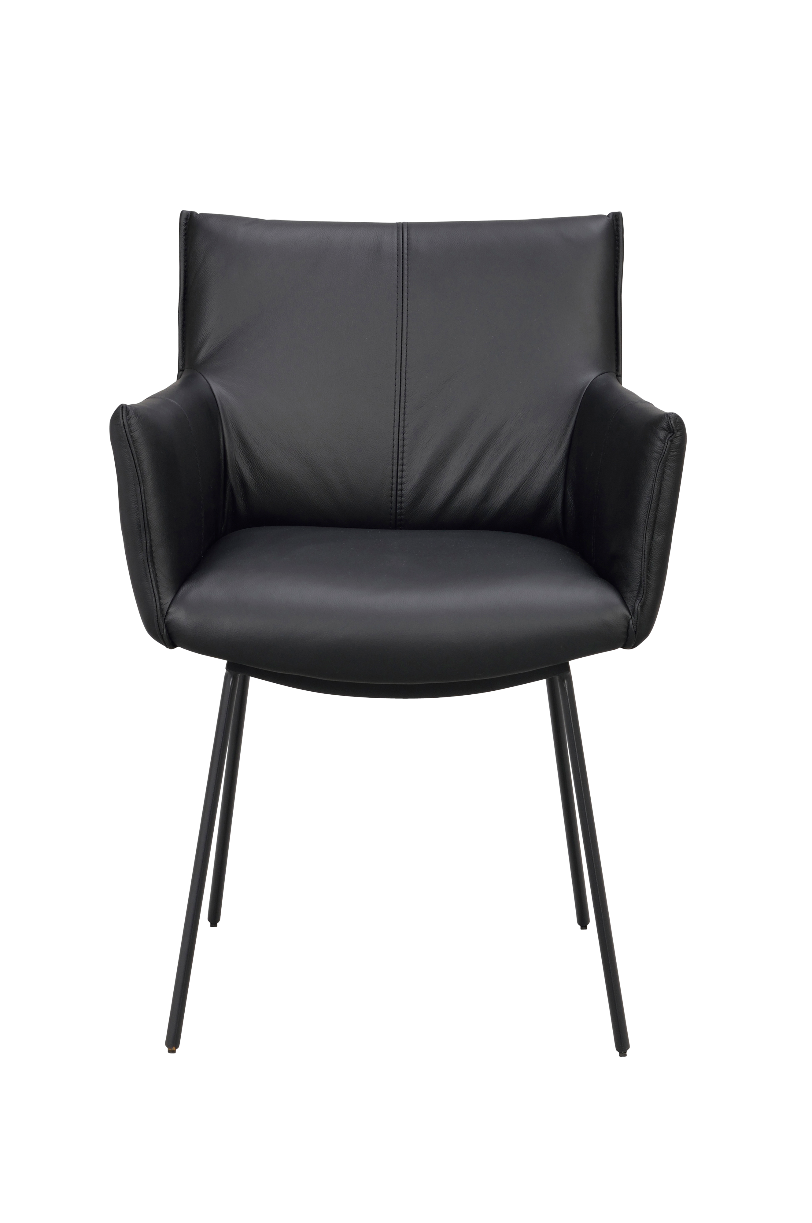 Hinckley-stolen med armstöd i läder och pulverlackerade metallben är en mycket bekväm möbel med hög designvärde. Med sitt något lägre ryggstöd kan stolen placeras som en fåtölj bredvid soffan eller som matstolar runt matbordet. Stolen gör ett starkt intryck i inredningen och gör att du kan njuta av måltiderna vid bordet under lång tid. Med sin höga kvalitet, bekväma sittdel och kantstickade detaljer utstrålar denna stol en kontinental känsla och kan användas i generationer.