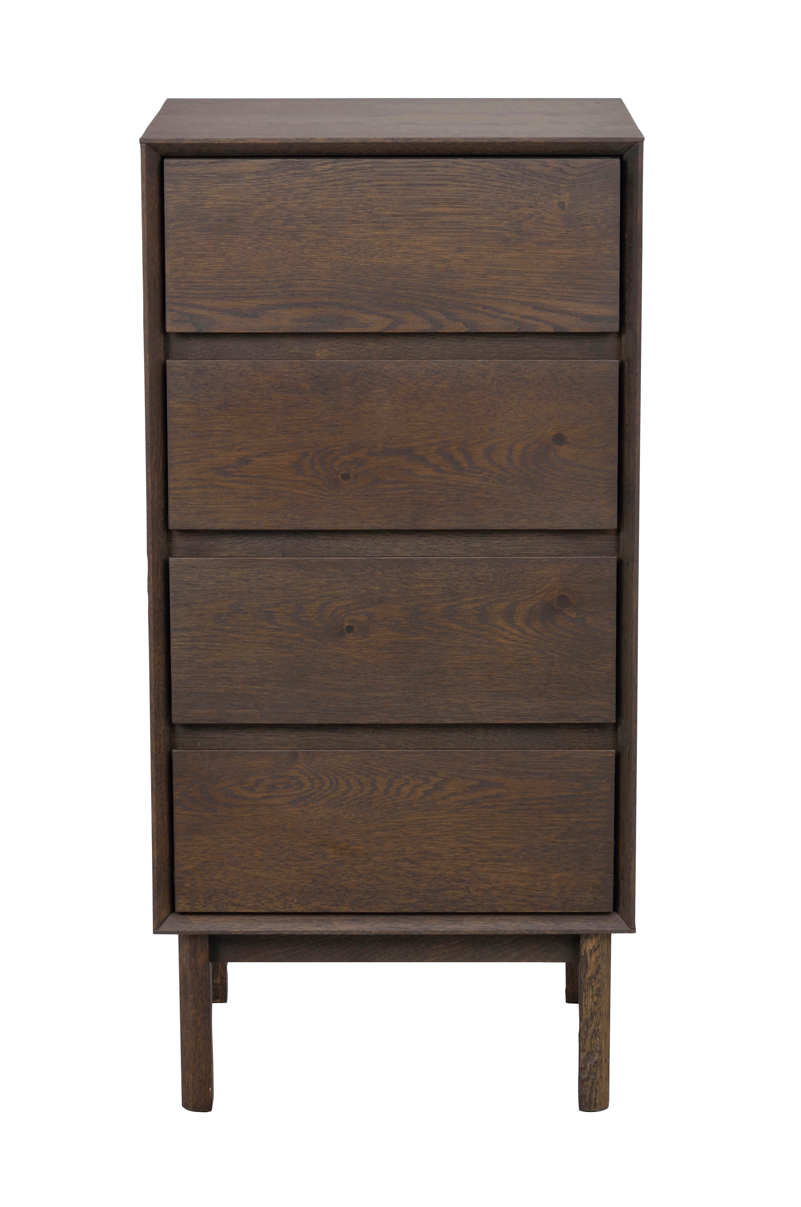Kommoden Mackay i brun vild ek är ett gediget hantverk med mittsågade hörn och en inramad design runt lådorna, vilket skapar djup och ett härligt skuggspel på möbeln. Byrån är 45 cm bred och har en klassisk design med sina rena linjer, vilket gör den tidlöst hållbar. Den passar lika bra i hallen som i sovrummet. Den vilda eken som används i byrån ger en intressant karaktär till möbelns yta. Mackay finns i tre olika storlekar. Träet i byrån är fsc®-certifierat och finns i alternativen oljad vild ek och brunoljad vild ek.