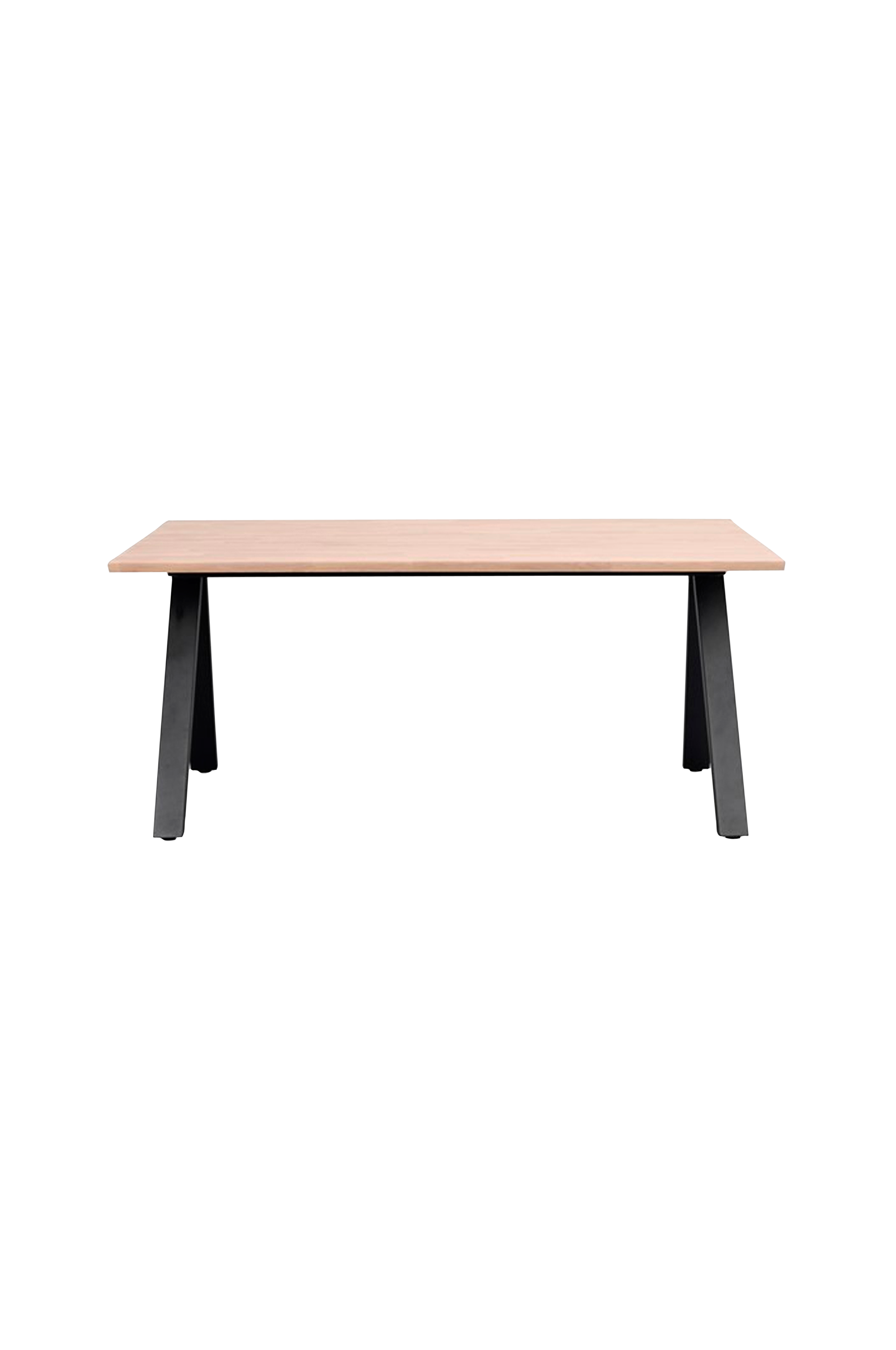 Carradale matbord 170 cm med tvådelad massiv bordsskiva i FSC-certifierad ek och v-formade ben i svart pulverlackad metall. De eleganta v-benen ger bordet ett luftigt uttryck. Bordsskivan kan kompletteras med 1 eller 2 tilläggsskivor à 50 cm vilket kan göra bordet upp till 270 cm långt, ingår ej.