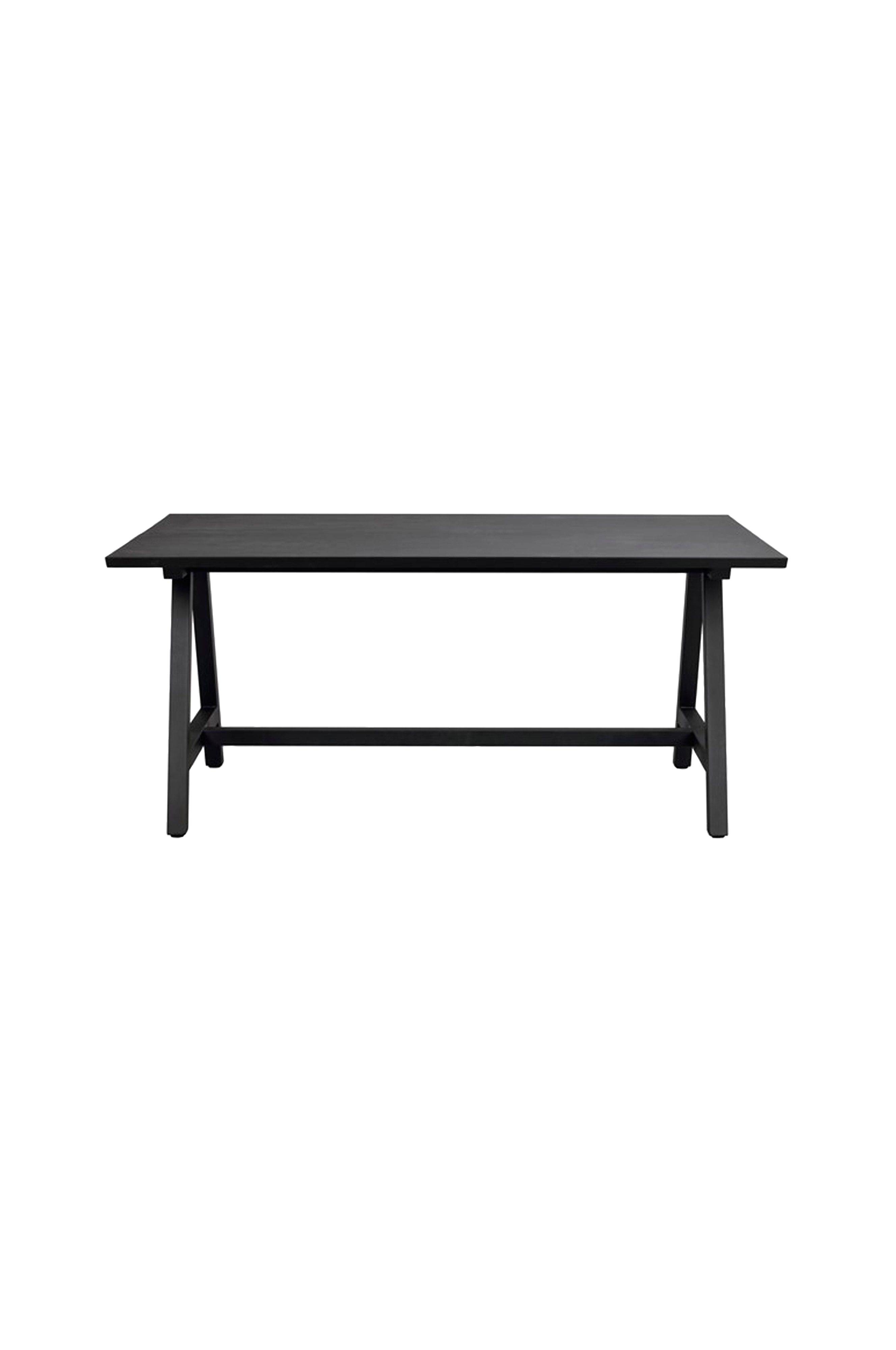 Carradale matbord 170 cm med tvådelad massiv bordsskiva i FSC-certifierad ek och a-formade ben i svart pulverlackad metall. Den stabila benställningen ger bordet en trygg känsla. Bordsskivan kan kompletteras med 1 eller 2 tilläggsskivor à 50 cm vilket kan göra bordet upp till 270 cm långt, ingår ej.