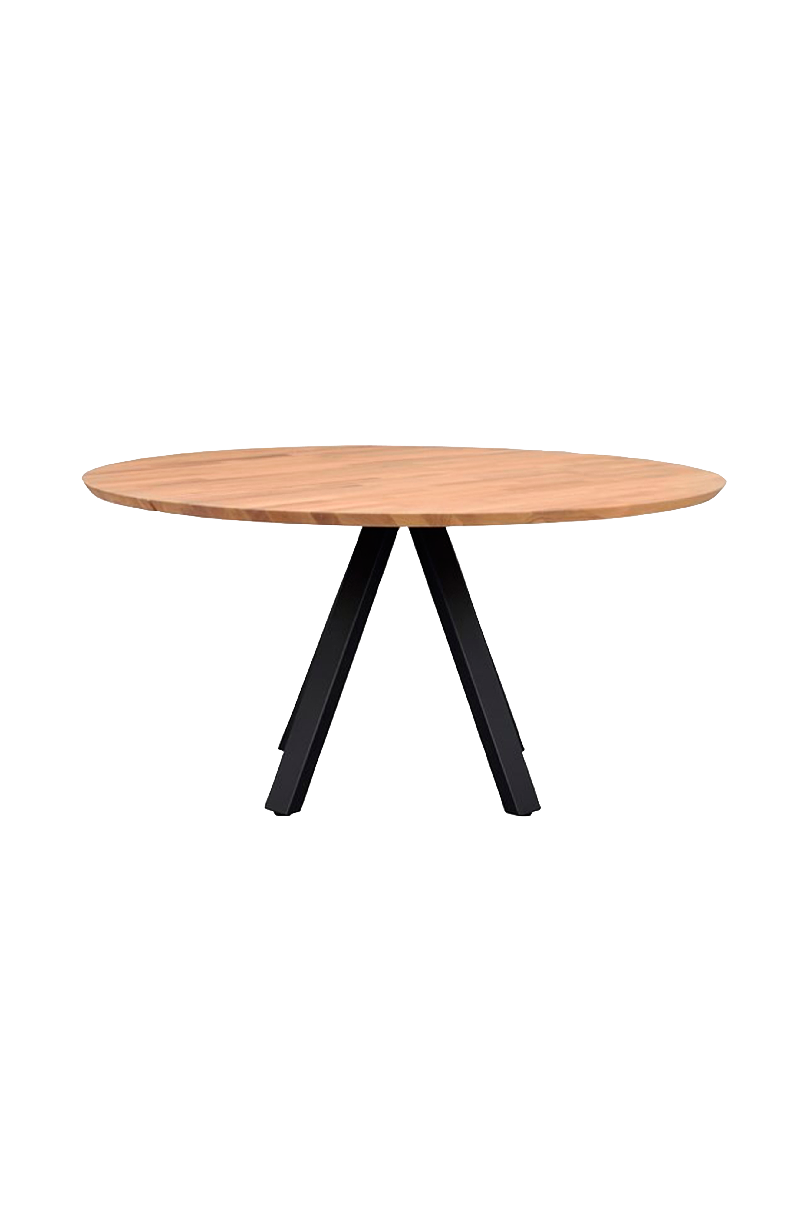 Carradale matbord med tvådelad massiv bordsskiva i ek och V-ben i svart pulverlackad metall.