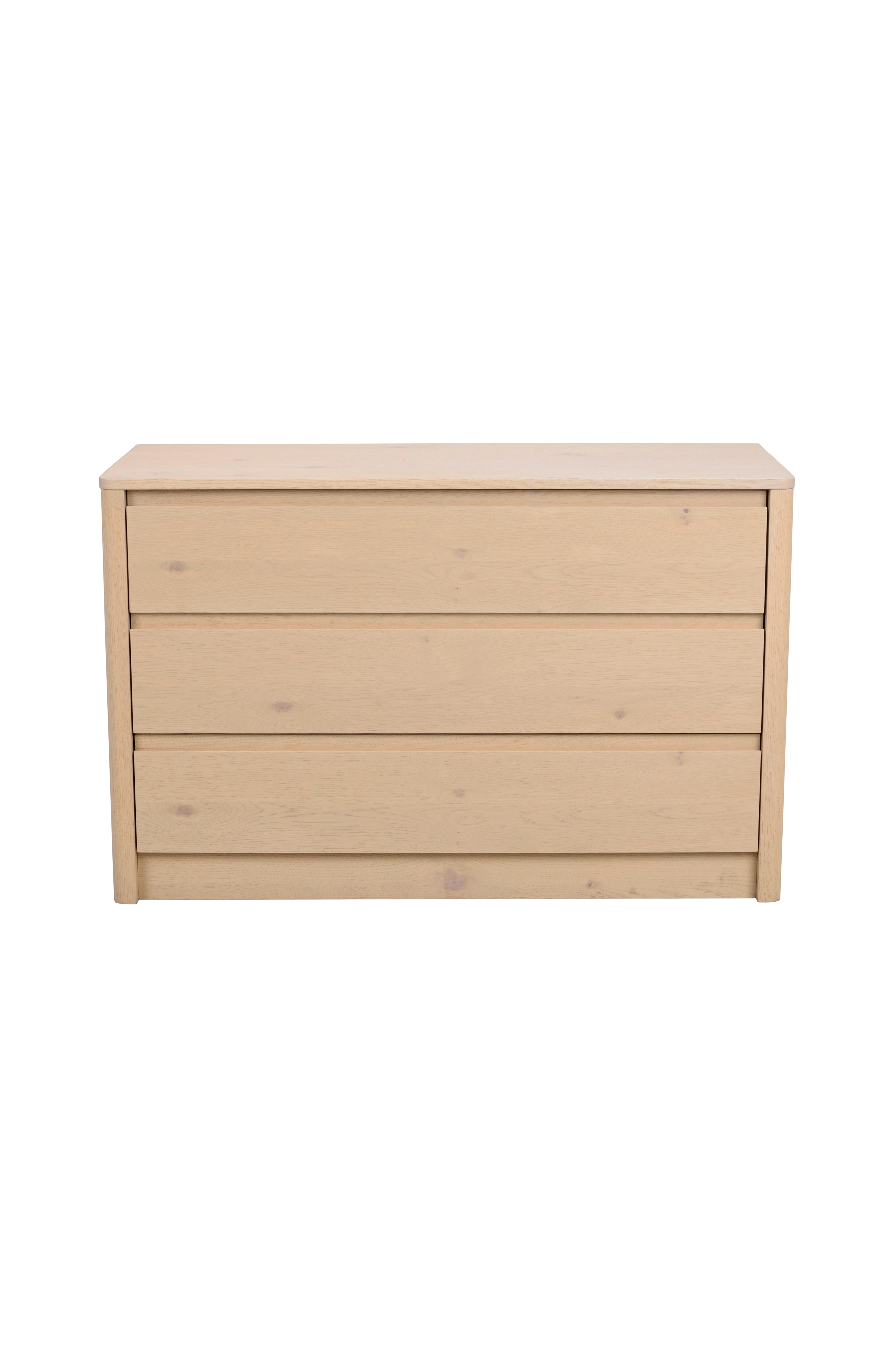 Melstone är en byrå tillverkad av vild ek, som kännetecknas av en stark känsla för hantverk och mjuka, flytande linjer. Lådorna har infällda handtag i massivt trä, en detalj som är både funktionell och estetiskt tilltalande. Alla ytor är fanerade med rundade kanter, vilket skapar ett mjukt och modernt utseende, medan den upphöjda ramen ger möbeln ett lätt, svävande intryck. Den dolda soft-close-funktionen på lådorna förstärker den raffinerade och välgjorda känslan.