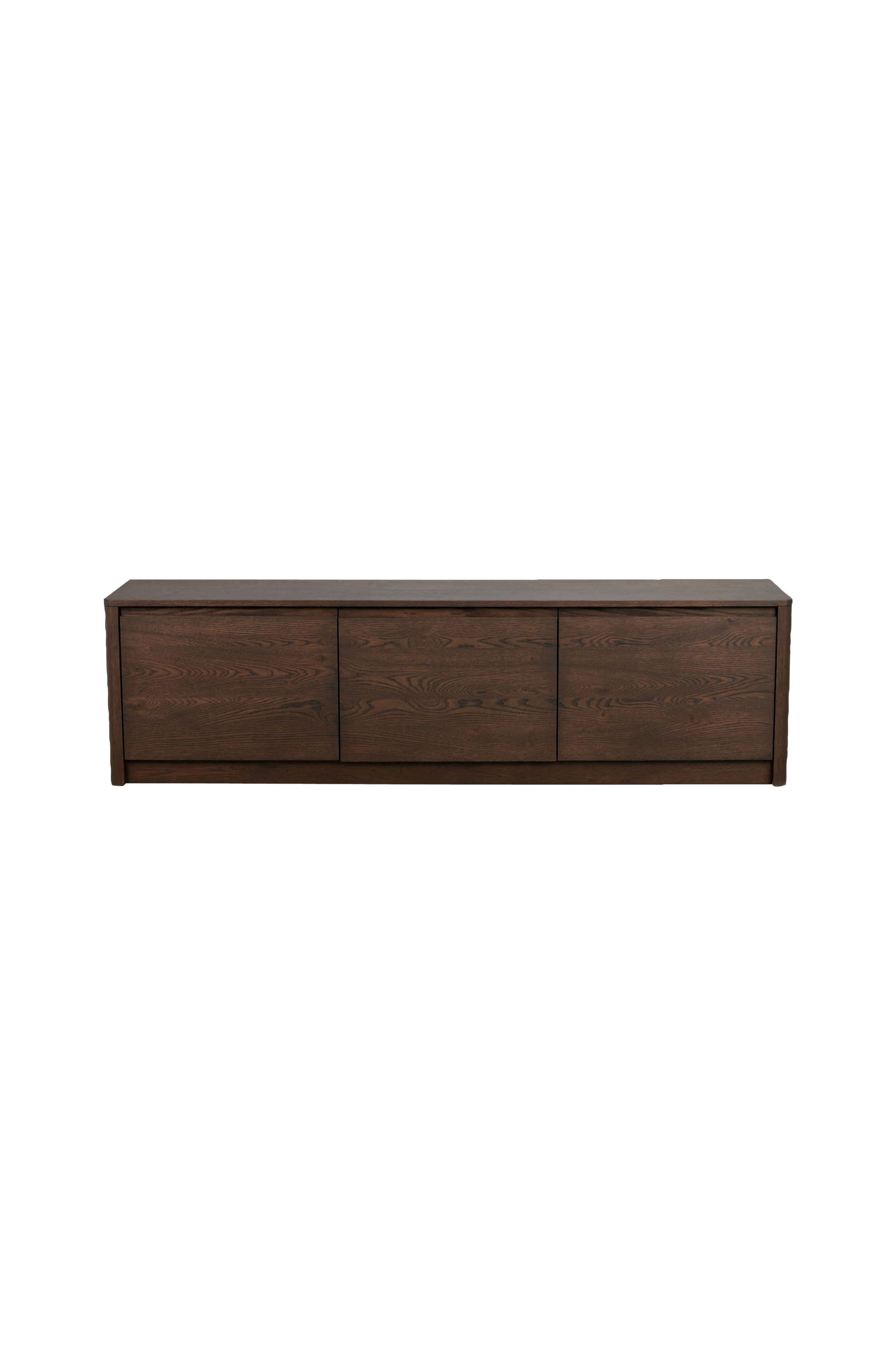 Den låga skänken i Melstone -kollektionen kombinerar smart förvaring med ett elegant formspråk och fungerar lika bra som en bänk i hallen som den gör som en elegant förvaringsmöbel i vardagsrummet. Skänken är tillverkad av vild ek med vackert fanerade ytor och rundade hörn och utstrålar värme och hantverksmässig kvalitet. Den kontinuerliga träådringen över framsidan är skapad av en enda träplanka, vilket ger designen ett harmoniskt och exklusivt utseende. De infällda handtagen i massivt trä smälter sömlöst in i designen. Sideboardet vilar på en upphöjd ram, vilket ger det ett lätt och luftigt utseende trots dess robusta konstruktion.