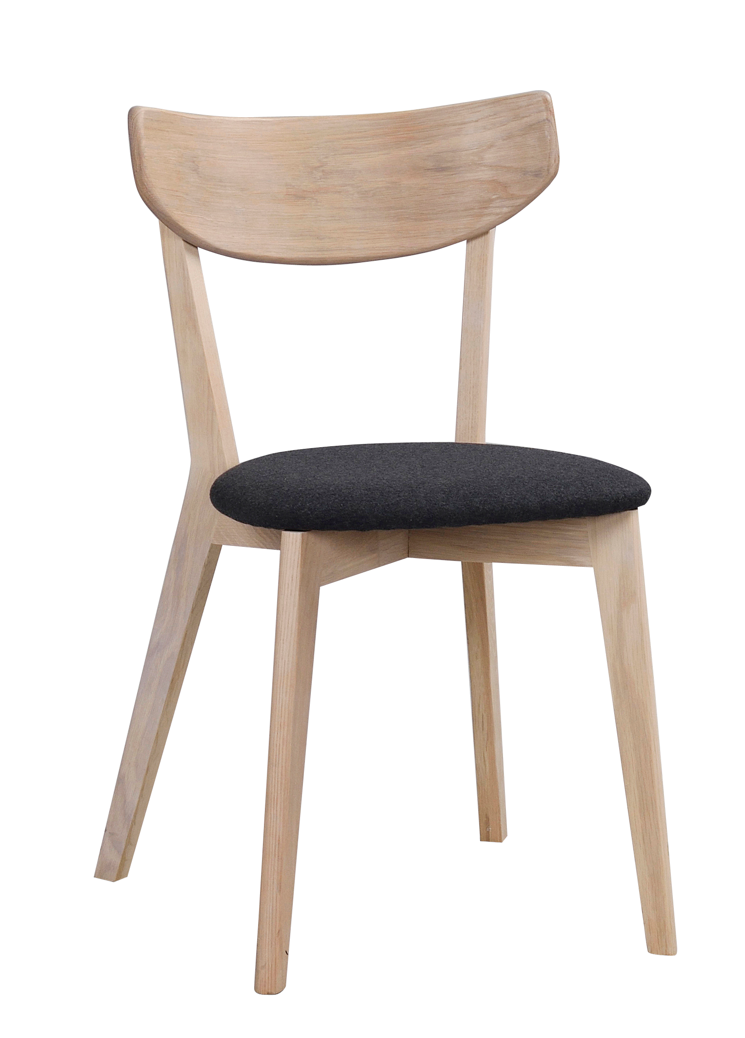 Klassisk trästol med en stilren rundad design. Klädd tygsits i 60 % viskos och 40% ull. Stolens stomme är i massiv ek. Bredd 48 cm, djup 47 cm, höjd 80 cm, sitthöjd 47 cm. Montera själv.